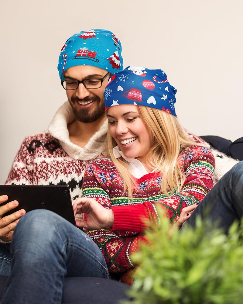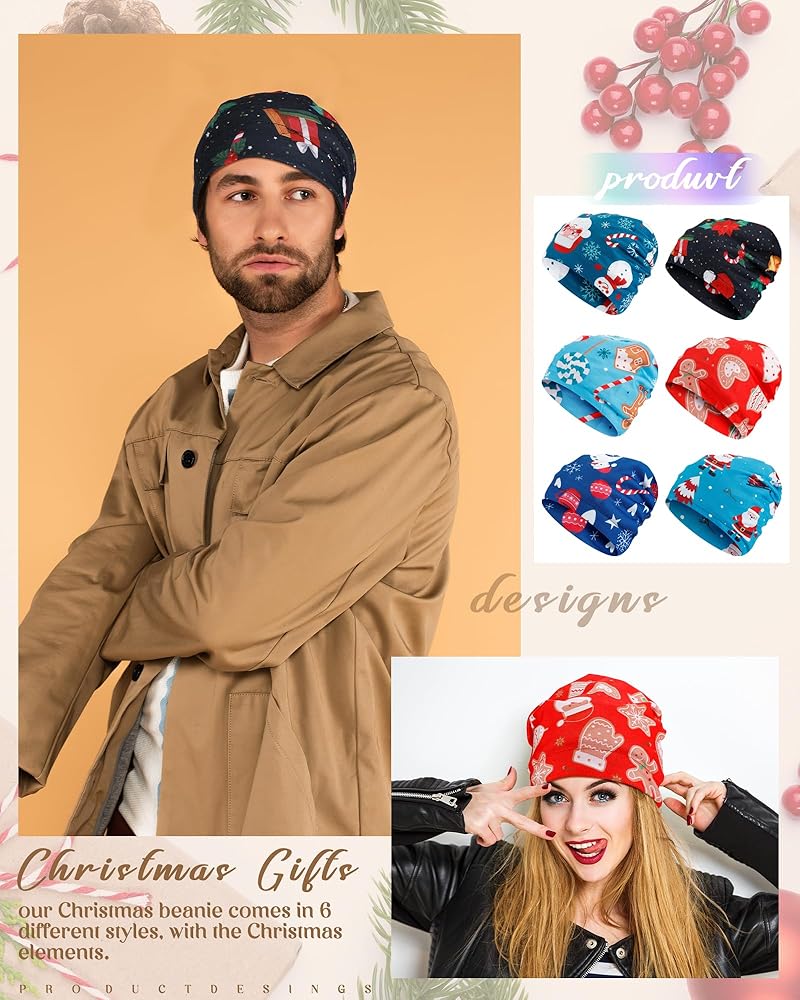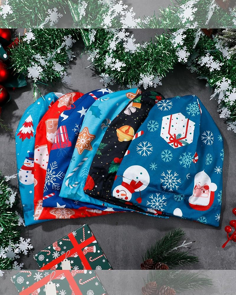 Xtinmee 6 قطع عيد الميلاد ثلج قبعة القياسية مغلقة الكيميائي محبوك القبعات الفضفاضة مترهل الجمجمة قبعة السرطان أغطية الرأس للرجال النساء المرضى الملحقات، 6 أنماط