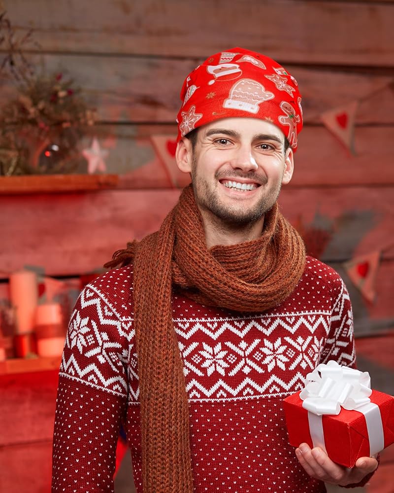 هدايا عيد الميلاد: تأتي قبعة عيد الميلاد الخاصة بنا في 6 أنماط مختلفة، مع عناصر عيد الميلاد مثل رجل الثلج، والحلوى، ورجل خبز الزنجبيل، وسانتا كلوز، وأكثر من ذلك، وهي إضافات مثالية لعيد الميلاد والارتداء اليومي، مزخرفة وعملية لتجعلك تبدو دافئًا ونشطًا. يمكن استخدامه كهدايا عيد الميلاد وهدايا رأس السنة الجديدة للأصدقاء والأحباء وغيرهم من الأشخاص الذين تحبهم