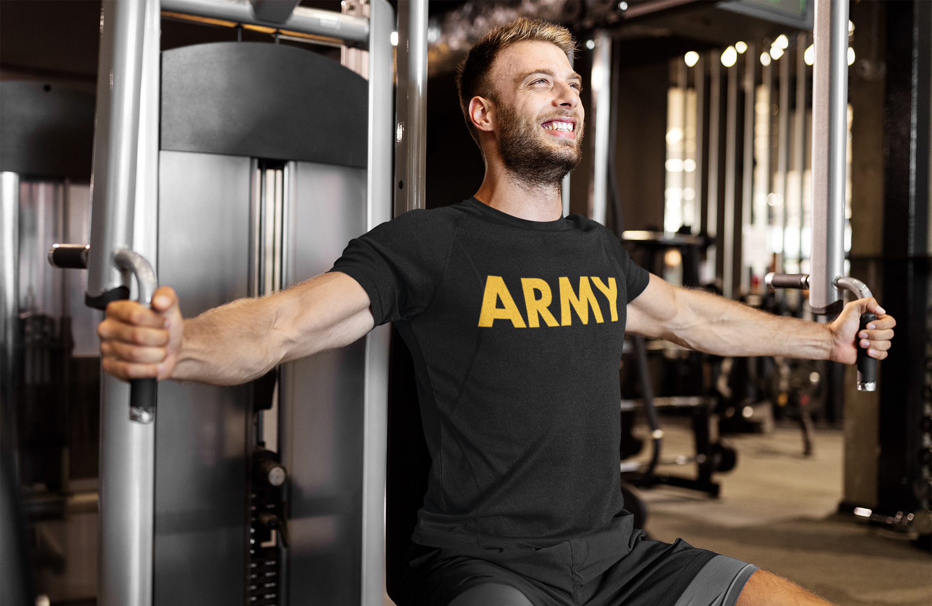 تي شيرت الجيش الرجالي | التدريب العسكري PT ممارسة التمارين الرياضية المحاربين القدامى خدمة دعم الأسرة الدافع