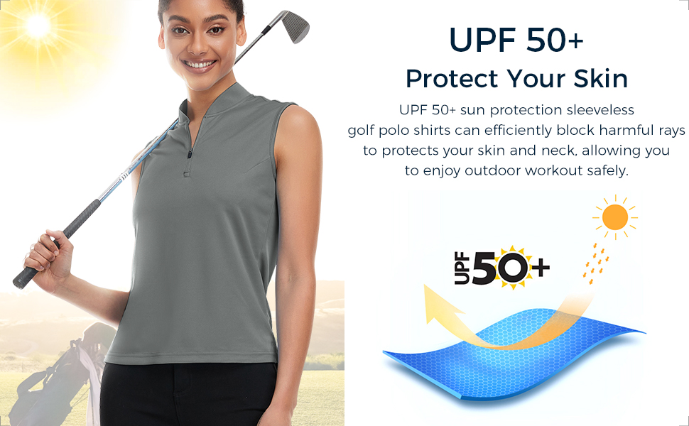 【الحماية من الشمس】 تم تصنيف قمصان بولو الجولف النسائية الماصة للرطوبة والتبريد الفوري بعامل حماية من الشمس 50+ حتى تتمكن من ارتداء قمصان بولو الجولف النسائية للقيام بالأنشطة التي تحبها مع الحماية من أشعة الشمس الضارة!