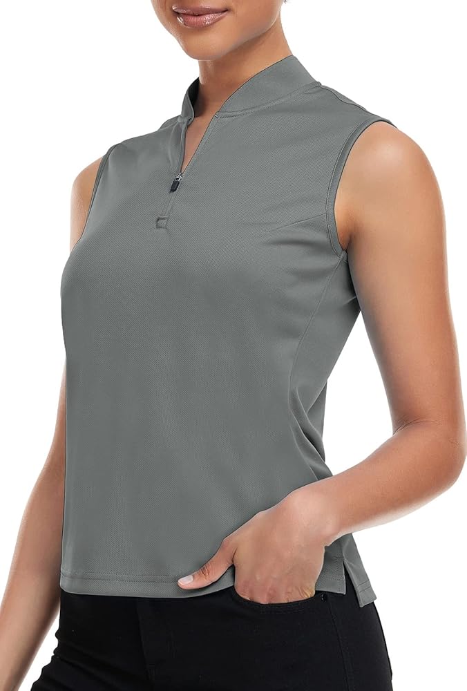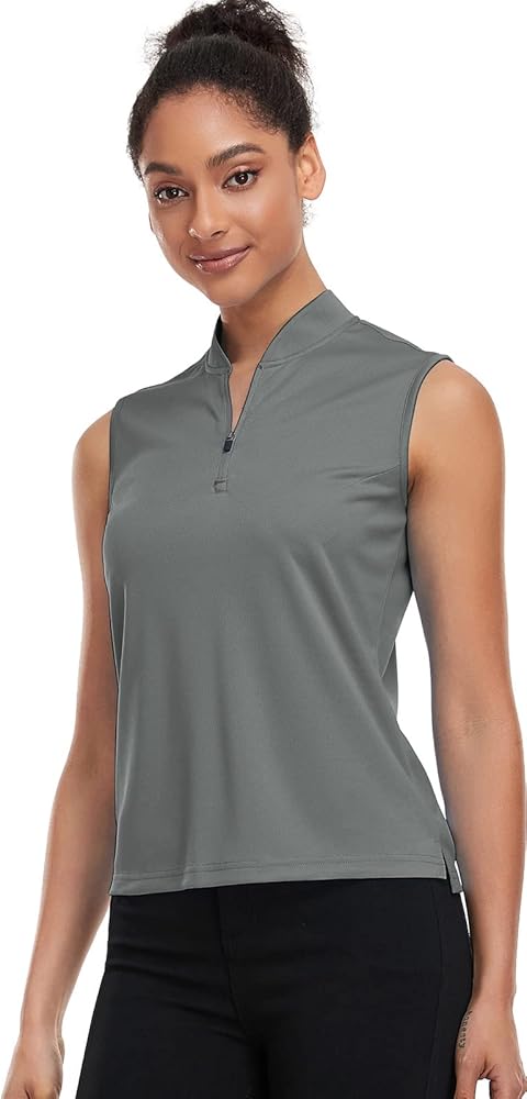 المرأة جولف بولو قميص بلا أكمام الجافة تناسب السيدات البريدي الياقة تانك الأعلى SPF 50 + قمصان التنس Mositure فتل