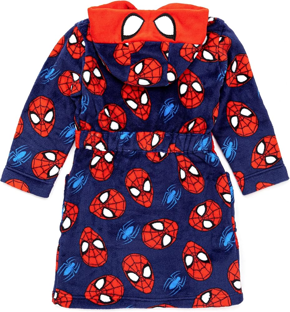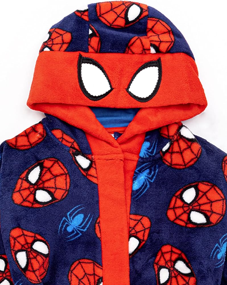 • رداء حمام MARVEL SPIDER-MAN للأولاد مثالي للأزياء التنكرية والاسترخاء - رداء النوم الخاص بنا للأولاد والبنات مثالي لمحبي القصص المصورة والأفلام Marvel Spider-Man الشهيرة؛ يأتي بأكمام طويلة وغطاء رأس ناعم ومريح لشخصية سبايدر مان!