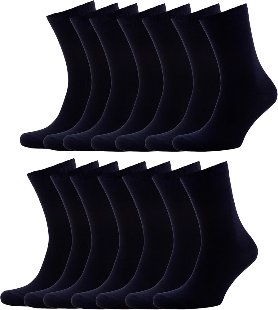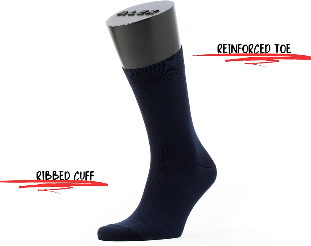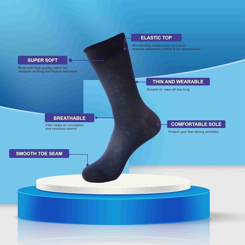 توفر الجوارب الفاخرة تصميمًا بدون علامة مع راحة فائقة للرجال بمقاسات من 6 إلى 11 بألوان كحلي داكن وأسود، وتوفر الجوارب القطنية الأصلية مزيجًا مثاليًا من الموضة والأداء.