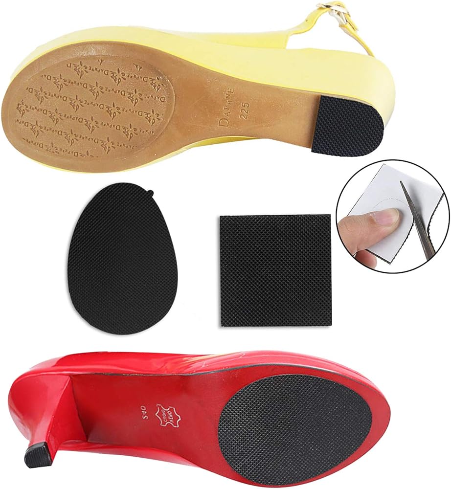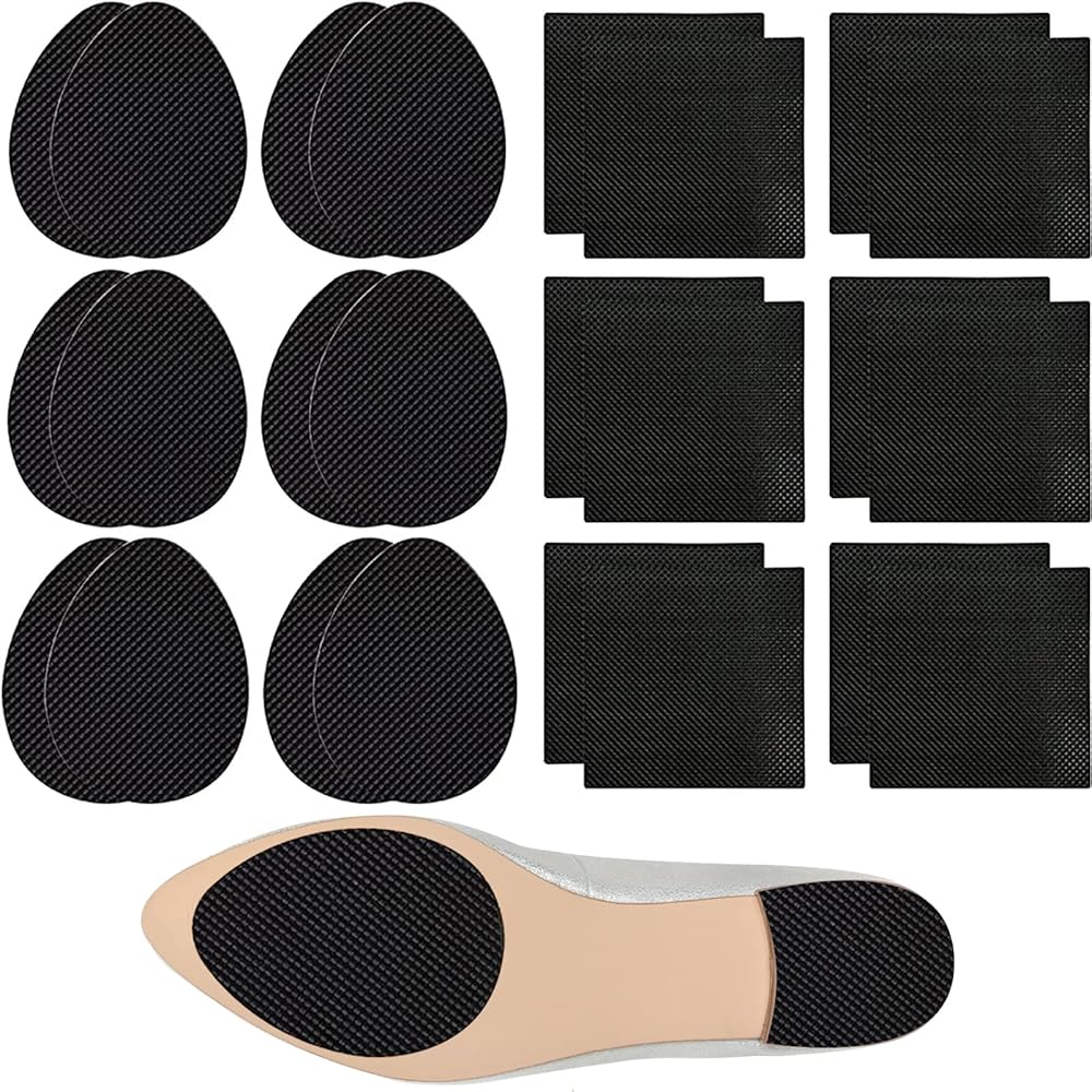 وسائد أحذية مضادة للانزلاق، 24 قطعة من المقابض المضادة للانزلاق لأحذية الكعب، وسائد أحذية مطاطية سوداء لاصقة، واقيات للكعب من أجل الأحذية على الجزء السفلي للنساء، أسود، 12 زوج (عبوة من 1)