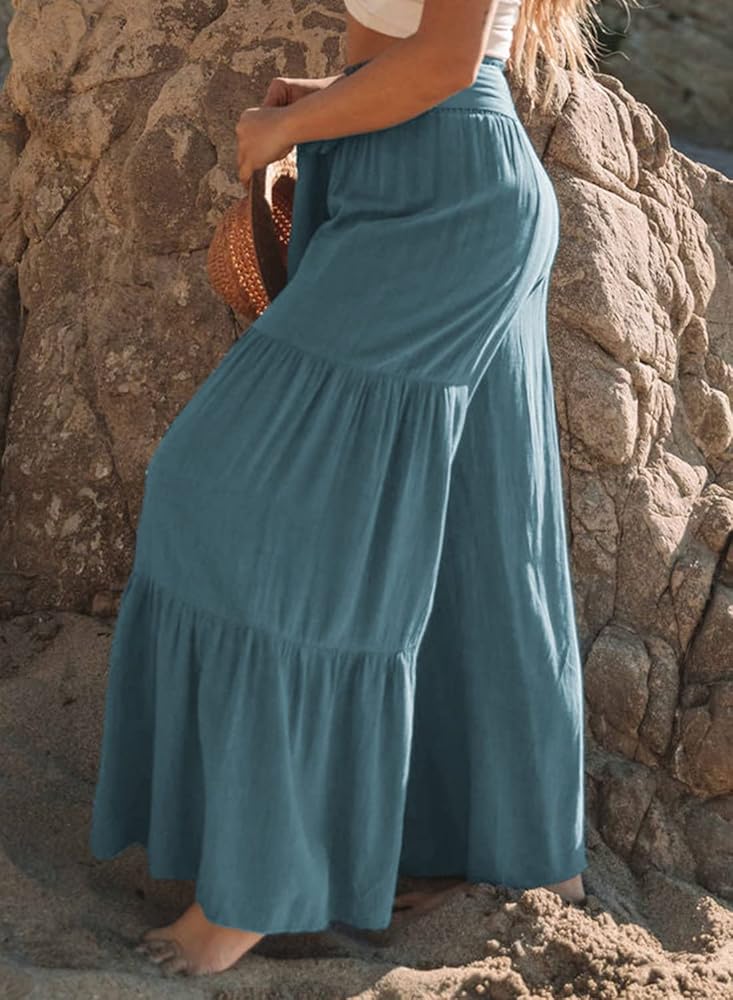• التصميم: سراويل متوهجة، الجزء السفلي من الجرس، حاشية مكشكشة، سراويل بأرجل واسعة عالية الخصر مع خصر مرن، تصميم برباط أمامي، غطاء فضفاض للشاطئ أو سراويل بيجامة نسائية
