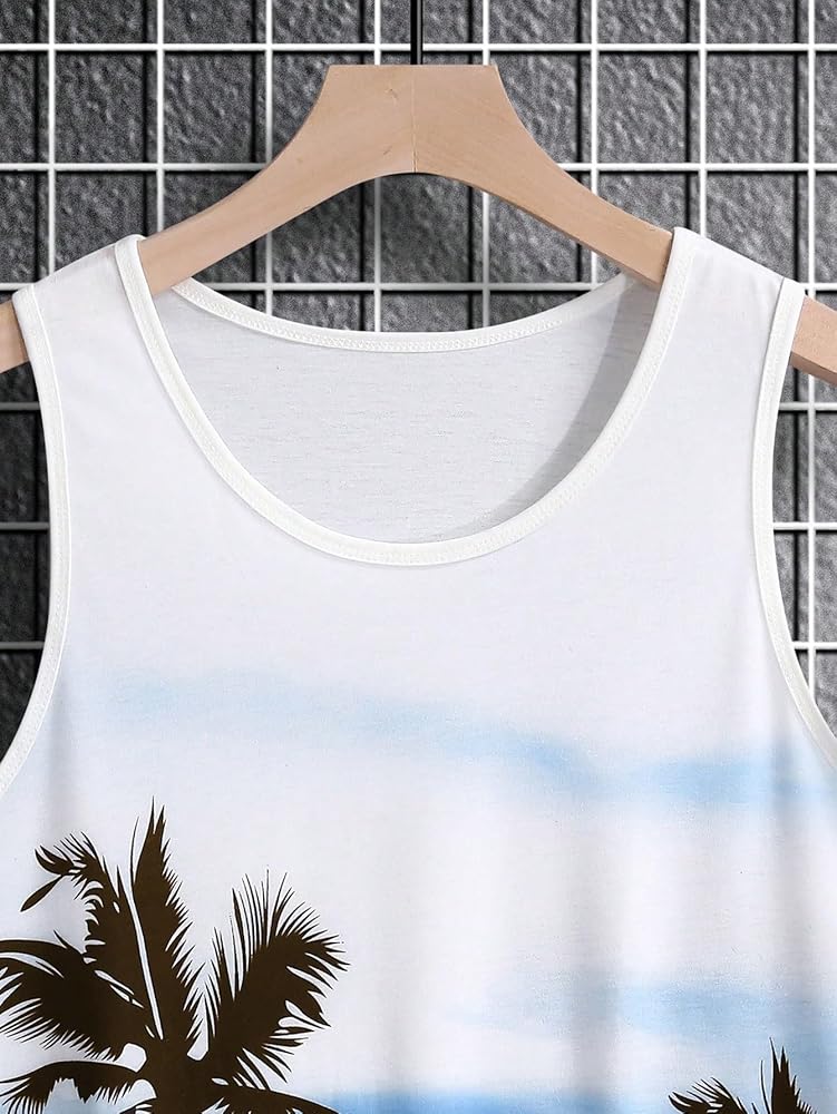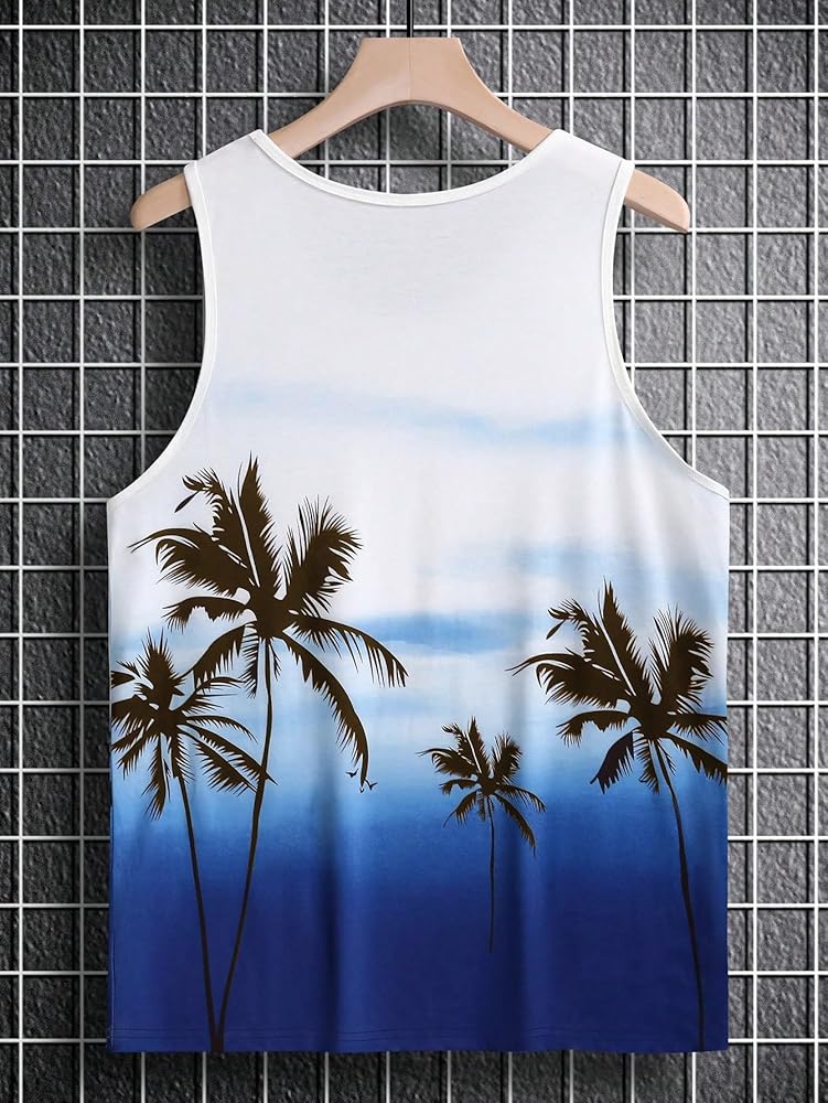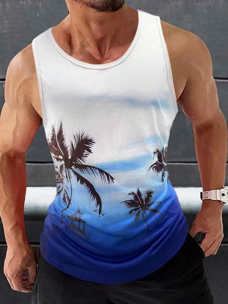 - قمصان بدون أكمام صيفية كاجوال بطباعة استوائية للرجال