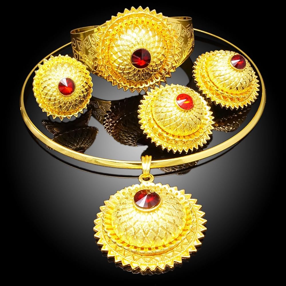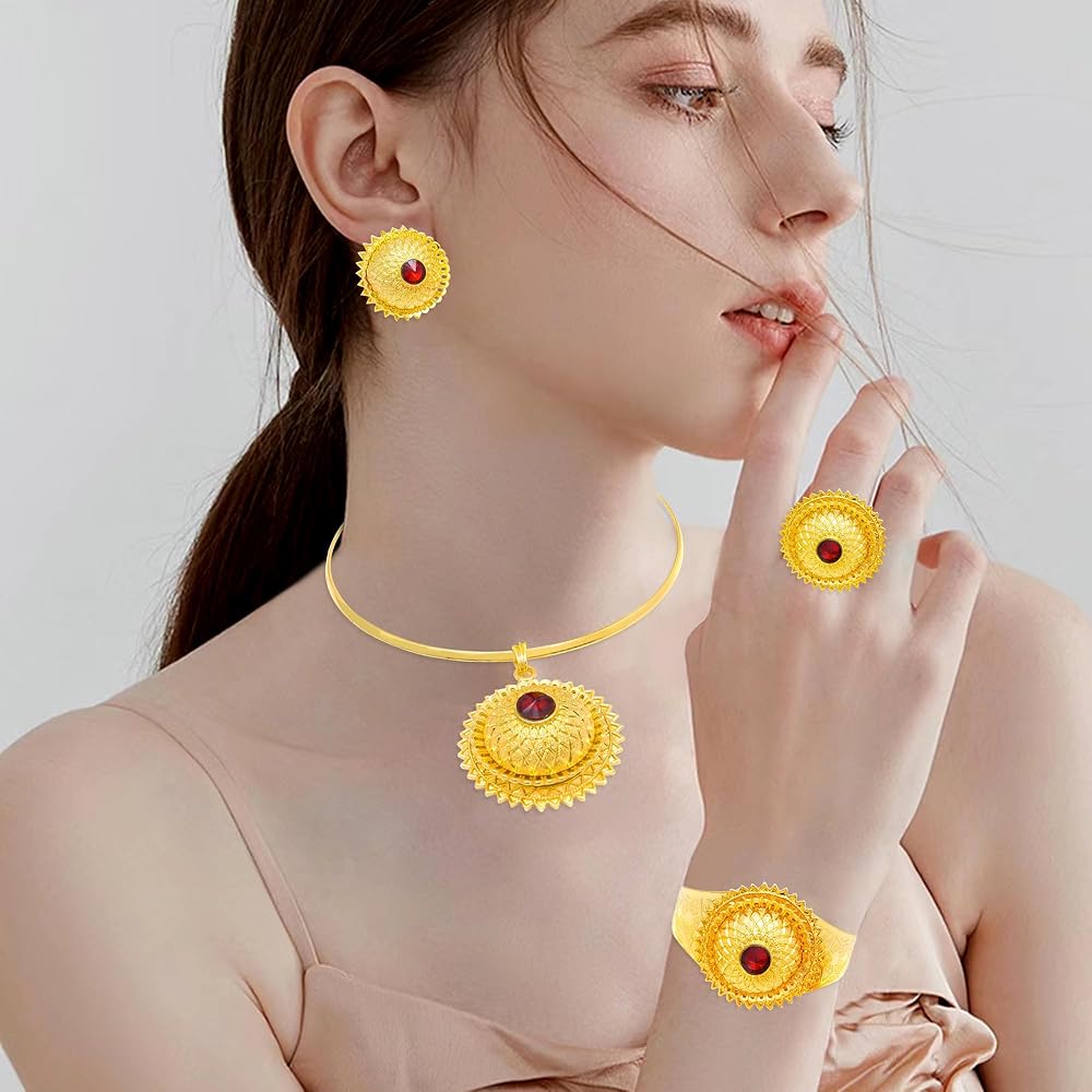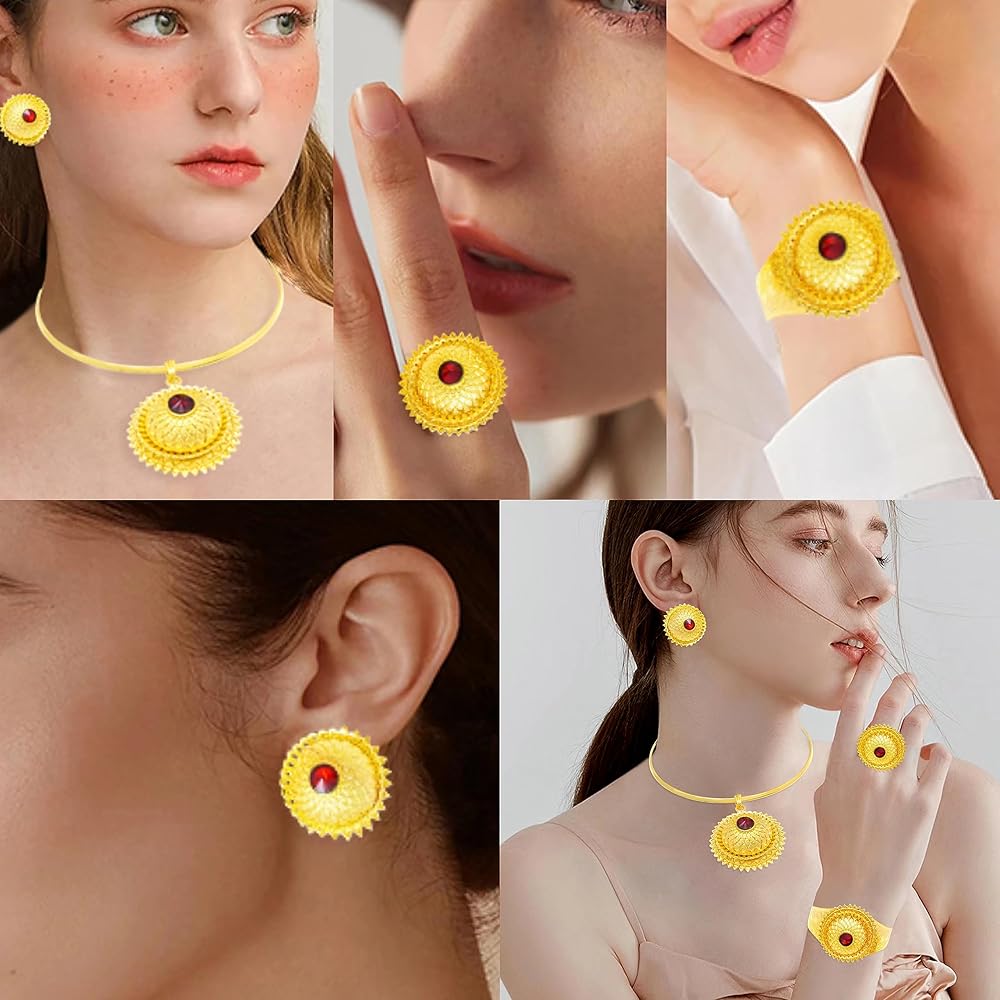 مجوهرات افريقية للنساء مطلية بالذهب عيار 24 قيراط من الذهب الاثيوبي هابيشا دبي، مجموعة مجوهرات تقليدية للعقود والاقراط والاساور الحلقية للعروس ووصيفات العروس وحفلات الزفاف والحفلات الراقصة، مطلية