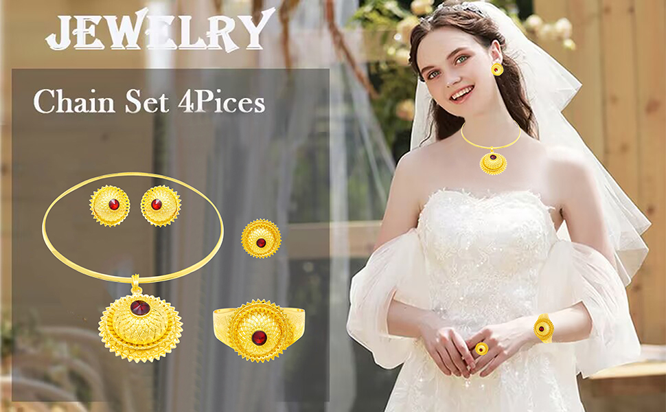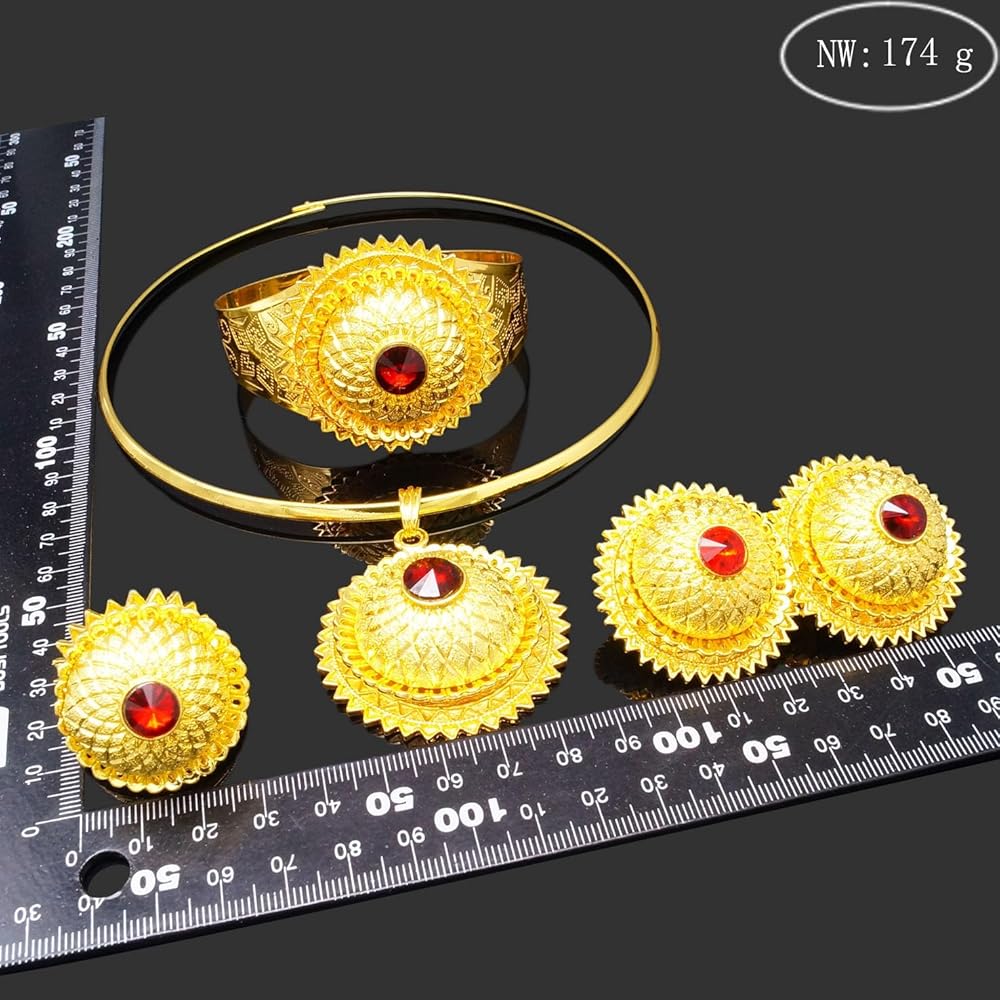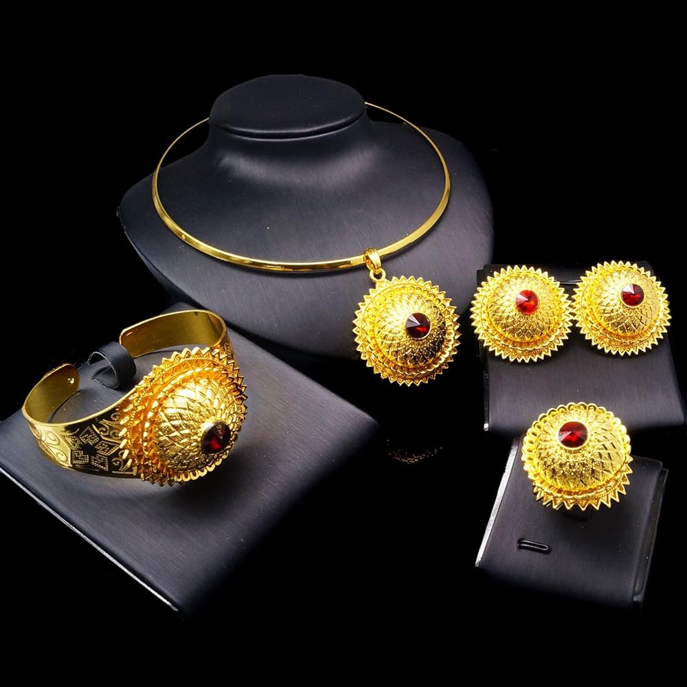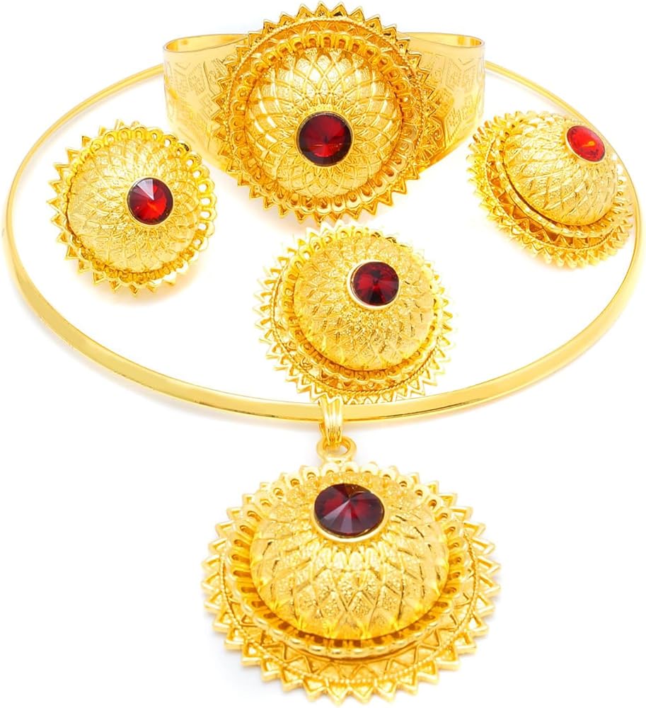 مجوهرات افريقية للنساء مطلية بالذهب عيار 24 قيراط من الذهب الاثيوبي هابيشا دبي، مجموعة مجوهرات تقليدية للعقود والاقراط والاساور الحلقية للعروس ووصيفات العروس وحفلات الزفاف والحفلات الراقصة، مطلية