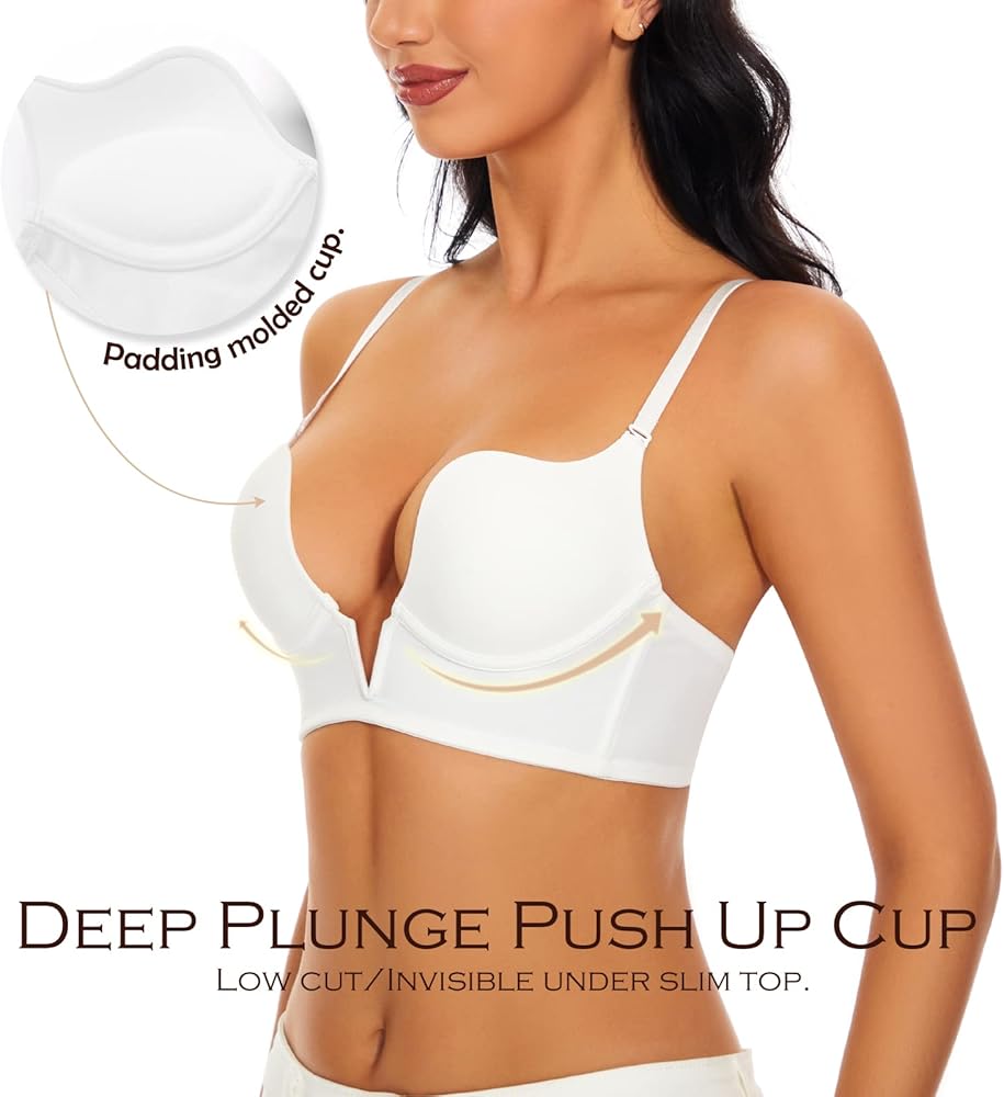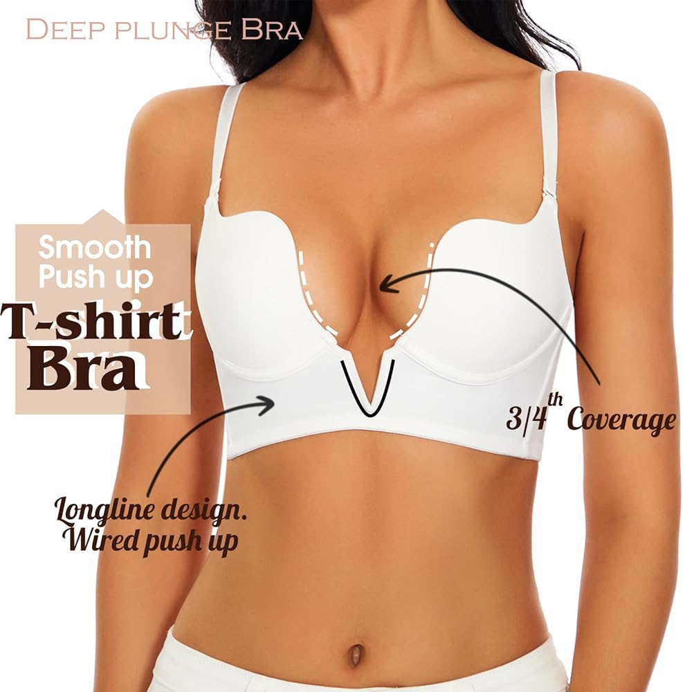 ♥ حمالة صدر عميقة ♥: دع كل سيدة ترتدي فستانًا بقصة منخفضة، وجزء علوي مفتوح دون إحراج، نحن نصمم هذه الصدرية الأساسية ذات فتحة عميقة على شكل حرف V. كوب مصبوب ناعم مع رقبة منخفضة القطع. خط عنق عميق مع شريط على شكل حرف V، يعمل بشكل جيد مع الجزء العلوي والفساتين ذات القصة المنخفضة. عزز الانقسام الجذاب والمثير واجعل جسمك المنحني يبدو مذهلاً.