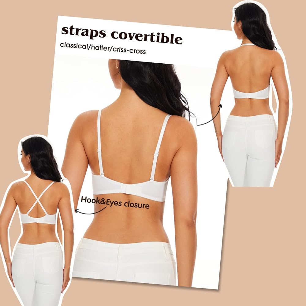 ♥ حمالة صدر قابلة للتحويل ♥: توفر الأشرطة القابلة للفصل والتحويل طرق ارتداء متعددة: حمالة صدر منخفضة الظهر بأشرطة مزدوجة، أو حمالة صدر متقاطعة. كما يمكنك تغيير الأشرطة الشفافة. العبوة بدون أشرطة شفافة.