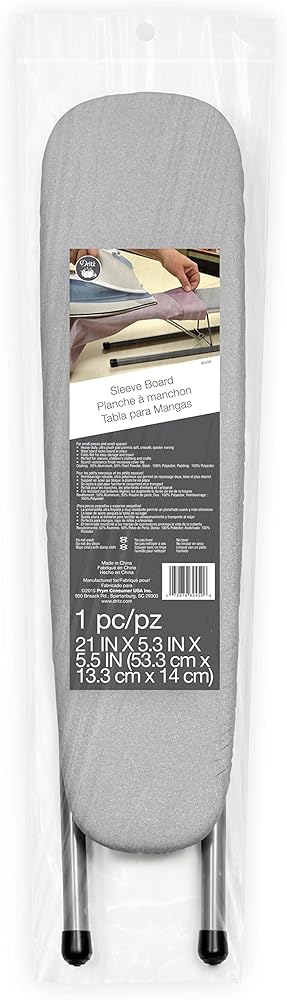 Dritz Clothing Care Sleeve Board is great for ironing small pieces. Perfect for sleeves, children's clothing and crafts! This board folds flat for easy storage and travel. Size : 5''x 5-1/2'' x 21''