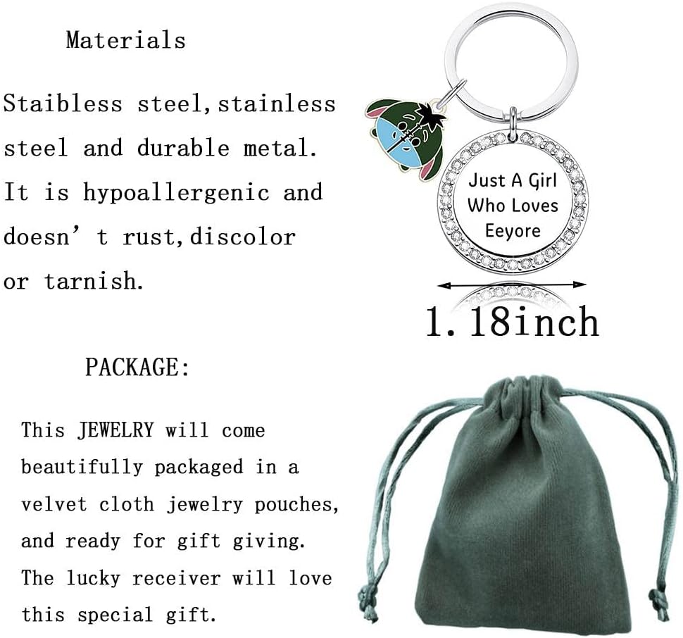 مثالية لأي مناسبة لتقديم الهدايا، وسلسلة مفاتيح ملهمة Eeyore، وهدايا الرسوم المتحركة لأحبائك، ومحبي Winnie pooh، ومحبي Eeyore، وأفراد الأسرة، والابنة، والأم، وأي شخص تحبه... إنها مناسبة لمختلف الأعمار، وهذا مناسب جدًا مناسبة لمحبي الحمير لشرائها أو إعطائها للآخرين.