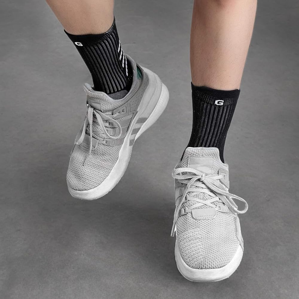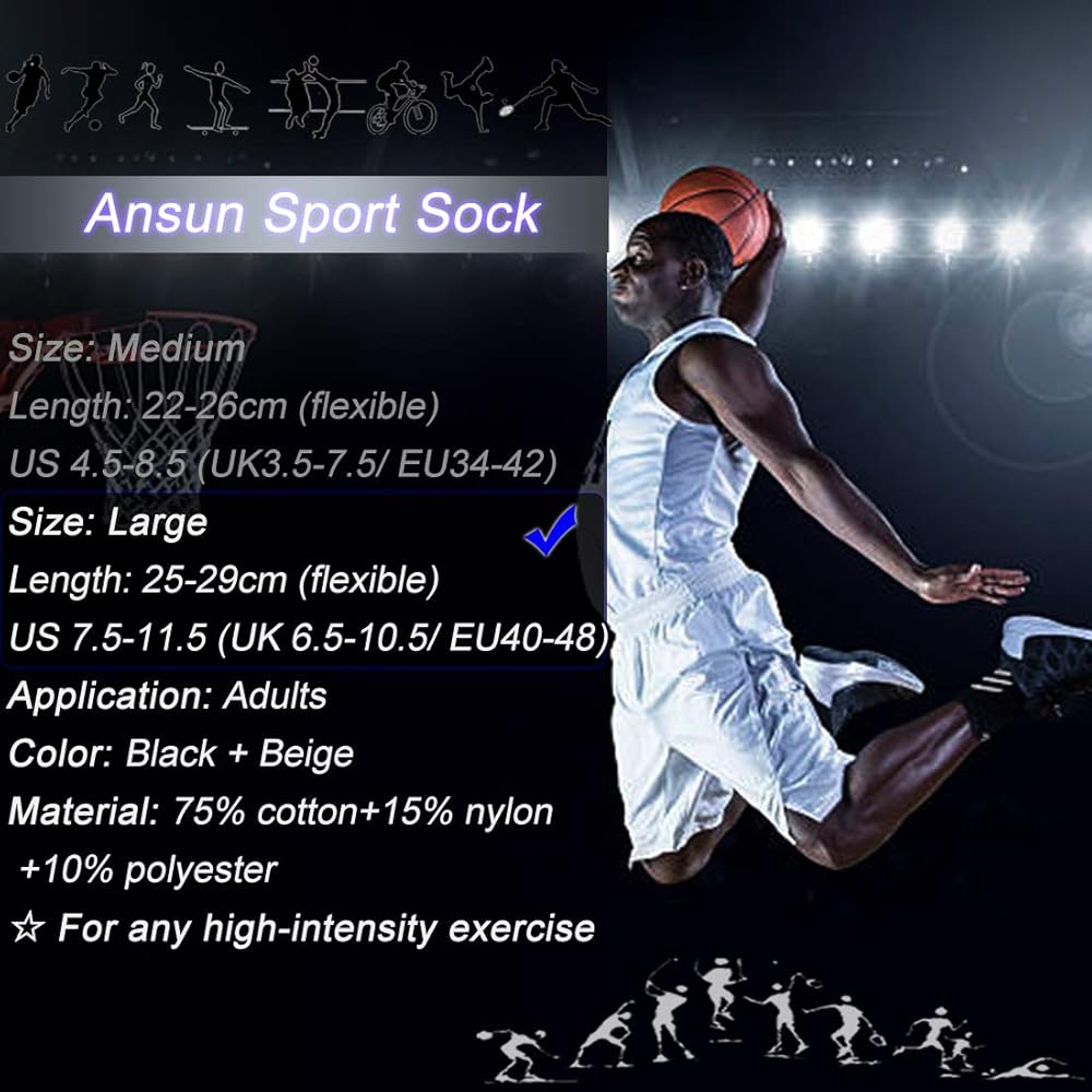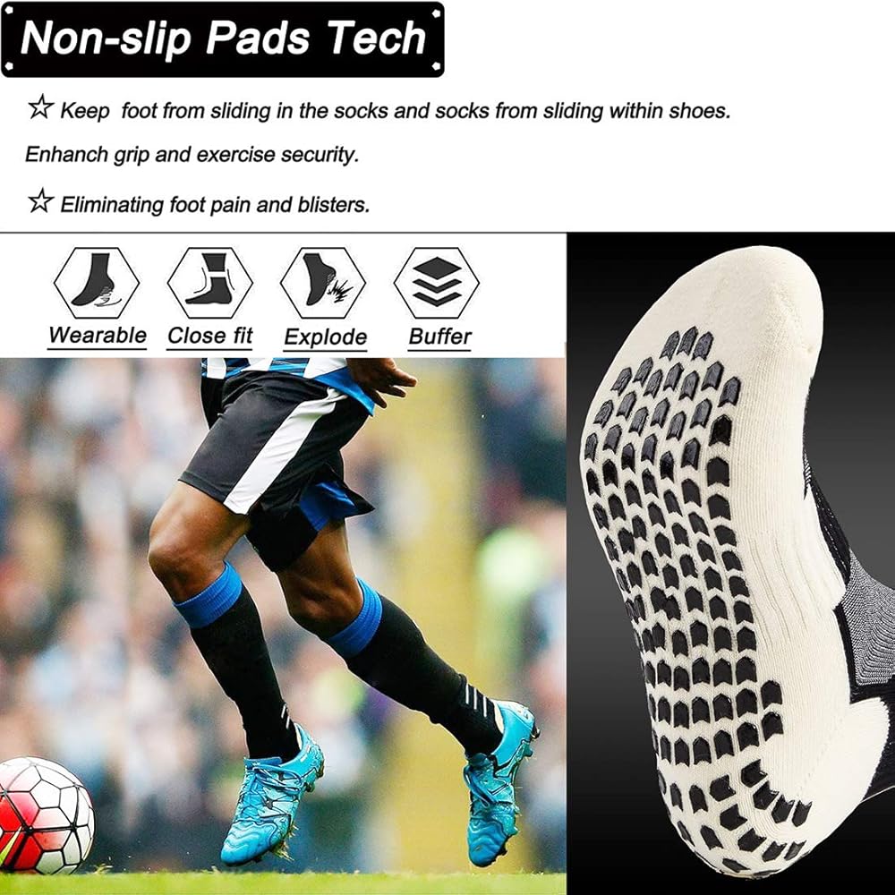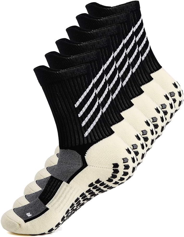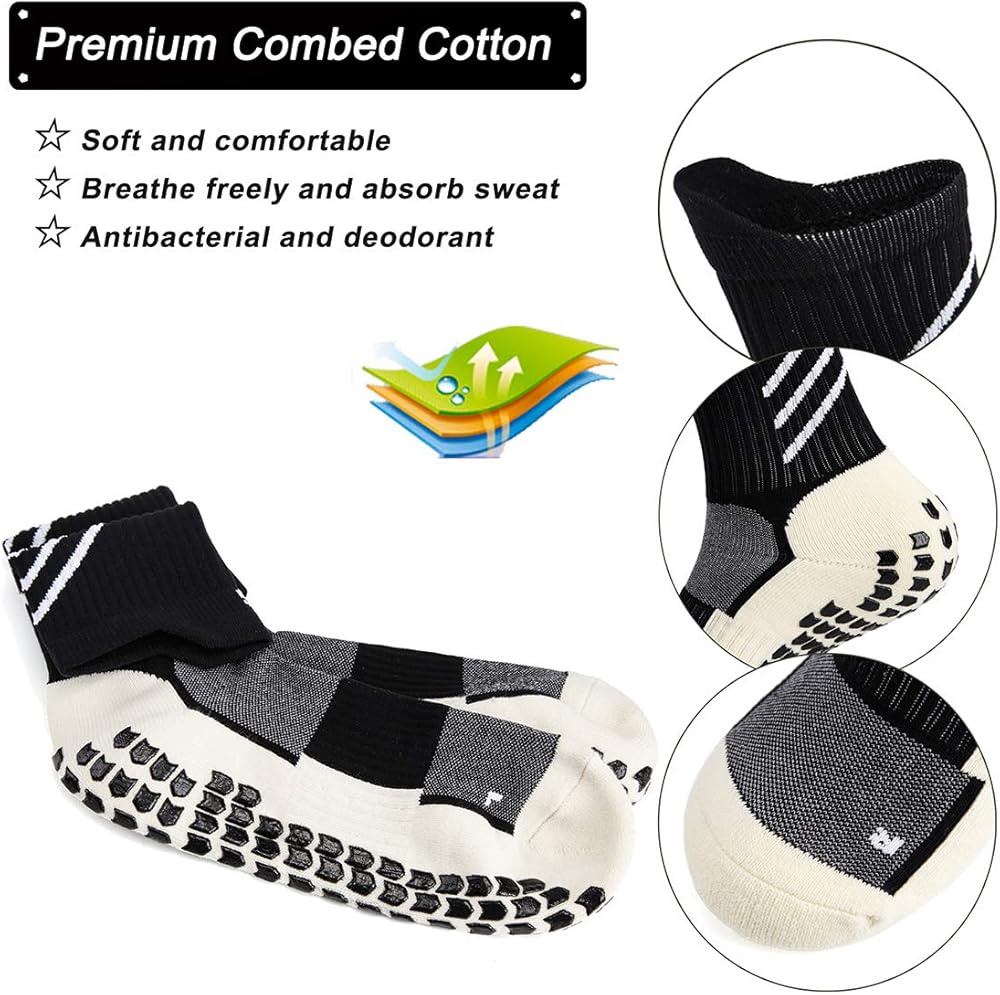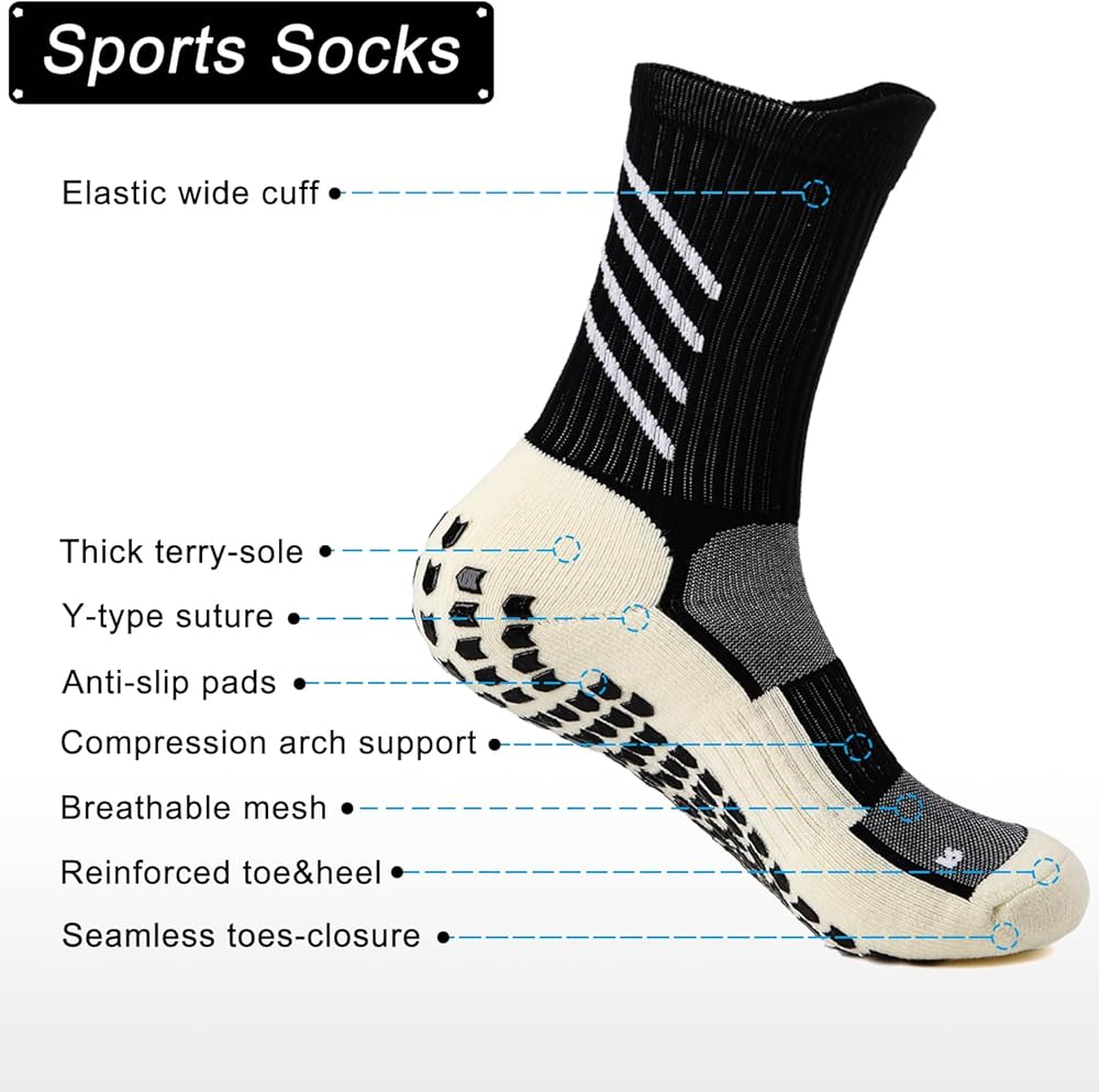 جوارب رياضية متعددة الأغراض مضادة للانزلاق للرجال والنساء.----الحجم M: US4.5-8.5 /UK3.5-7.5 /EU34-42 (الطول 22-26 سم) /الحجم L: US7.5-11.5 /UK6 .5-10.5/EU40-48 (الطول 25-29 سم). يمكنك ارتداء هذه الجوارب ذات المقبض لكرة القدم وكرة السلة والبيسبول والجري وركوب الخيل والتنزه سيرًا على الأقدام. علاوة على ذلك، فهي جوارب مفيدة مضادة للانزلاق للرياضات والأنشطة الداخلية: مثل جوارب اليوغا للياقة البدنية؛ جوارب شبشب للمنزل أو المستشفى.