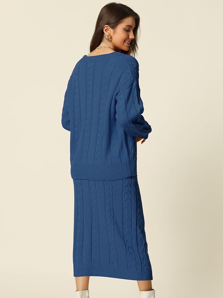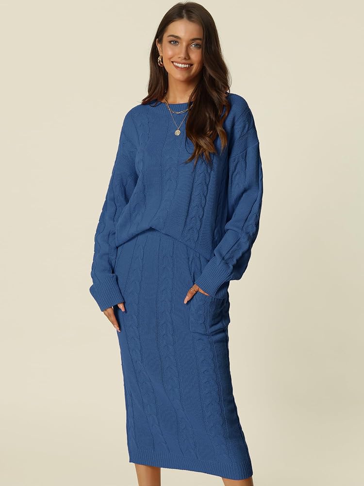 - الميزات: سترة بياقة مستديرة/قصة ضيقة/تنانير متوسطة الطول/جيوب/مجموعة سترة غير رسمية/زي مكون من قطعتين بلون موحد