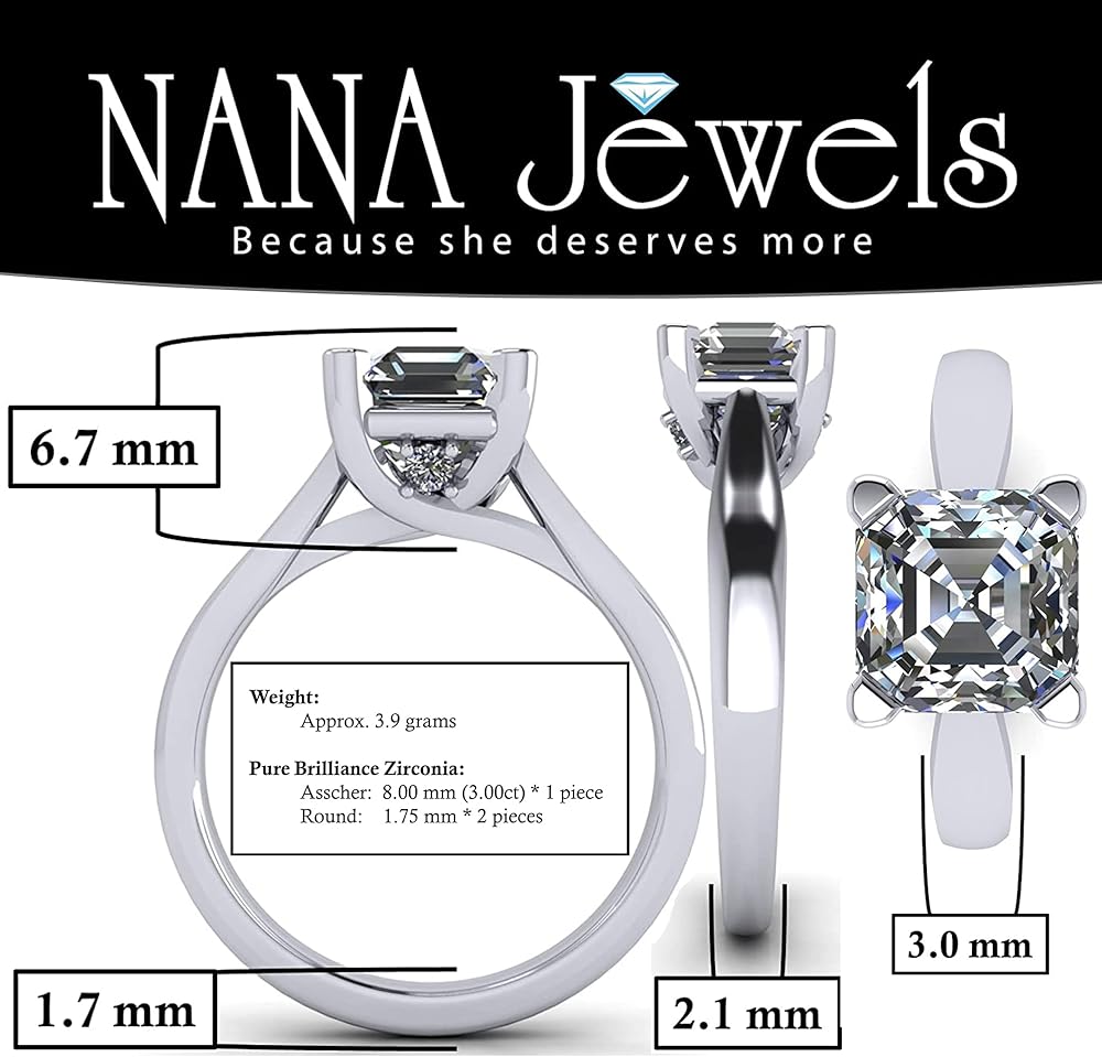 تصميم خالد وبسيط: تهدف خواتم الخطوبة إلى أن تدوم مدى الحياة لتمثل حبك والتزامك. يتميز خاتم الزفاف الخالد هذا بحجر سوليتير بيور بريليانس زركونيا من قطع Asscher محاط بحجر واحد مميز على الساق لتعزيز جماله. هذا الخاتم هو خيار سهل للرجال الذين يبحثون عن خاتم خطوبة، إذا كنت تبحث عن مظهر خاتم خطوبة سوليتير كلاسيكي. 3.00 قيراط، خاتم زركونيا مكعب.