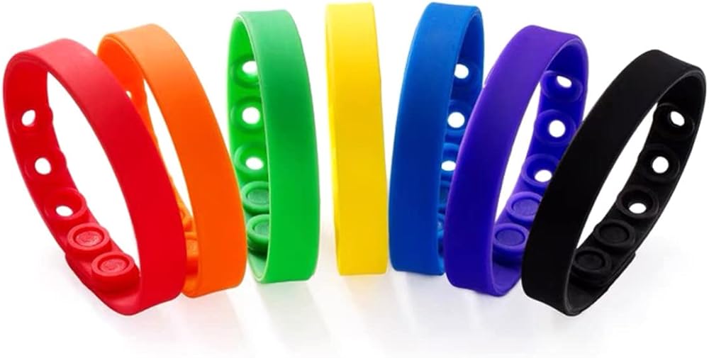 ❀تم الحصول على إجمالي سبعة ألوان (أسود/أزرق/أخضر/أرجواني/أحمر/أصفر/برتقالي) أساور معصم من السيليكون قابلة للتعديل، فهي ناعمة ومرنة وعصرية وشخصية. إنها مناسبة لليوجا واللياقة البدنية وتسلق الجبال والاستكشاف. يمكن مطابقتها مع جميع أنواع الملابس، هذه الأساور الملهمة مثالية للاستخدام اليومي.