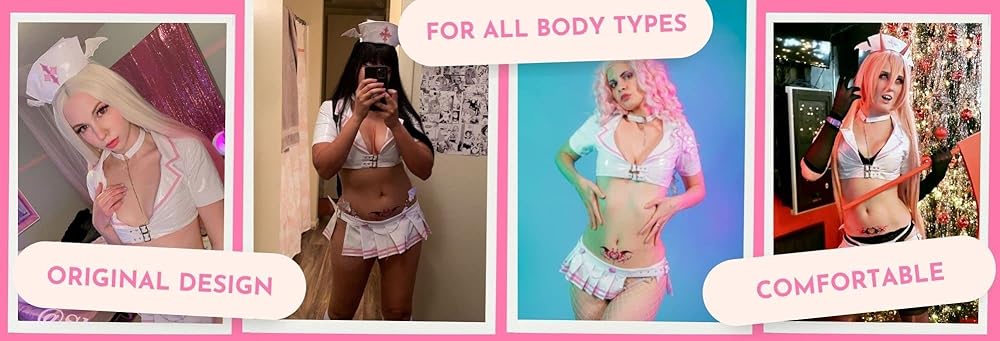 • زي Kawaii Anime Nurse - تم تصميم هذا الزي التنكري ليأسرك، ويتميز بفستان قصير أبيض قصير وجريء يبرز منحنياتك في جميع الأماكن الصحيحة مع الشعار المتقاطع على القبعة الذي يضيف لمسة من الأصالة