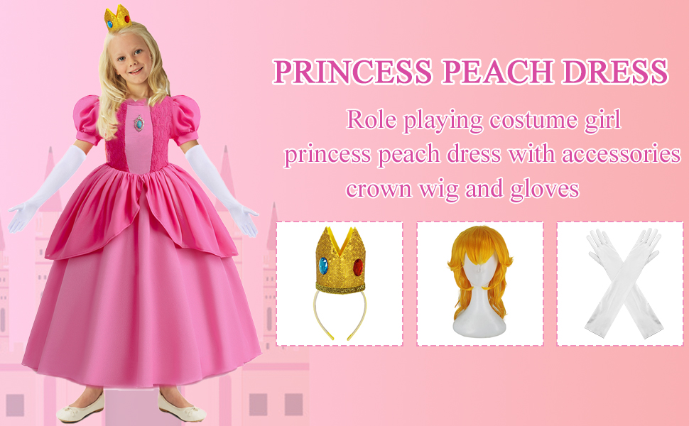 جودة عالية: زي الأميرة الخوخ للفتيات مصنوع من البوليستر الفاخر، مريح في الارتداء، مما يضمن أن طفلك سيبدو ويشعر وكأنه أميرة حقيقية لساعات من اللعب الخيالي أو متعة الهالوين.