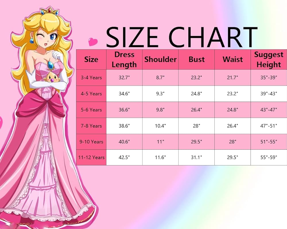 المقاس: فستان الأميرة الخوخي الخاص بنا مناسب للفتيات من سن 3 إلى 12 سنة، يرجى الاطلاع على جدول المقاسات للحصول على التفاصيل قبل الطلب