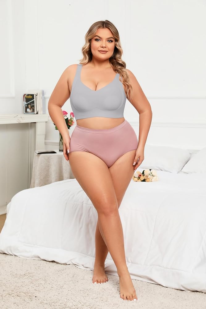 【حمالة صدر عالية التمدد بدون أسلاك داخلية】تصميم خلفي على شكل حرف U. بدون أسلاك وبدون درزات، لا توجد أسلاك داخلية أو أكواب مبطنة خفيفة الوزن لإحساس خفيف الوزن وطبيعي، مثالية للنوم أو ممارسة الرياضة أو تحت القمصان والملابس. مناسبة للنوم طوال الوقت. الليل. إغلاق بخطاف وعين لسهولة الارتداء والخلع.
