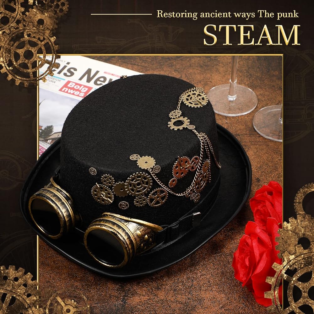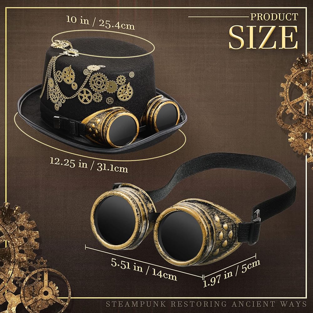 قبعة Steampunk ونظارات Cosplay : القبعة العلوية للرجال حوالي 12 × 10 × 4 بوصة، محيط الرأس حوالي 7 × 6 × 4 بوصة، المادة الناعمة تجعلها مريحة في الارتداء، إطار نظارات steampunk مصنوعة من البلاستيك الصلب المغطى ، الحجم حوالي 6. 8 × 5. 7 بوصة 5 سم، تصميمات قابلة للتعديل يسمح لك بتعديله بسهولة