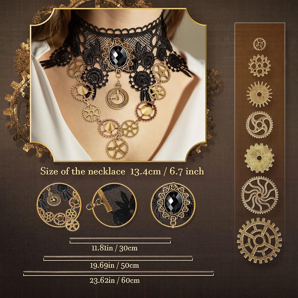 أظهر طرازك: هذه القلادة القلادة ذات الياقة ستيمبانك ذات العتاد القوطي مناسبة لمعظم الفتيات أو النساء بمحيط رقبة من 30-37 سم / 11 × 14 بوصة ؛ مصنوعة من الدانتيل ، قلادة القلادة المختقة عتيقة وشرير ، يمكن مطابقتها بسهولة مع أنماط مختلفة من الملابس