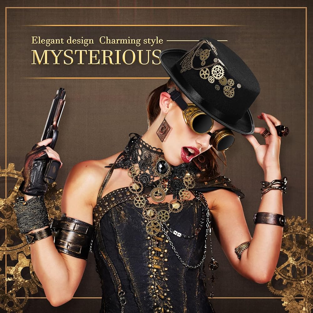 إكسسوارات Steampunk: سوف تحصل على زوج واحد من نظارات Steampunk ، قطعة واحدة من القبعة العلوية ، قطعة واحدة من قلادة من الياقة ذات العتاد القوطي ، حزمة واحدة من حلي قلادة Steampunk Gear ، قطعة واحدة من 3 طبقات سلاسل ، والتي هي تركيبات لطيفة لمختلف المواضيع من الحفلات