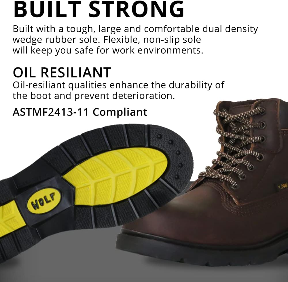 دعم الكاحل - قياس 15.24 سم من القوس، يوفر حذاء العمل WOLF دعمًا للكاحل وهو أمر ضروري لتحقيق الاستقرار. حافظ على سلامتك في أي تضاريس واظهر بمظهر رائع مع هذا التصميم الأنيق.