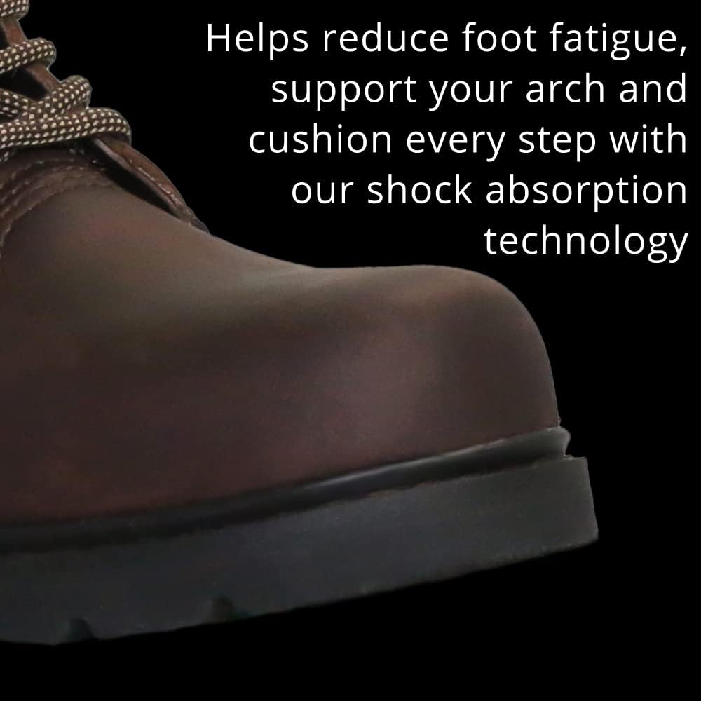 حافظ على قدميك جافة مع أحذية العمل الكلاسيكية المتينة للرجال من WOLF، المصنوعة من جلد أصلي معزول مقاوم للماء بنسبة 100%. قلل من إجهاد القدم، وادعم قوس القدم، وقم بتبطين كل خطوة باستخدام تقنية امتصاص الصدمات الخاصة بنا من أجل نظام راحة فريد يلبي معظم بيئات العمل. ابقِ آمنًا في أي التضاريس واظهري بمظهر رائع مع مقدمة مركبة ولسان مقوا، مما يضمن الراحة طوال اليوم. نعل داخلي مبطن من مادة البولي يوريثين خفيف الوزن ومريح وجيد التهوية سيبقيك مستمرًا أثناء العمل. مثالية لاحتياجاتك أثناء العمل.