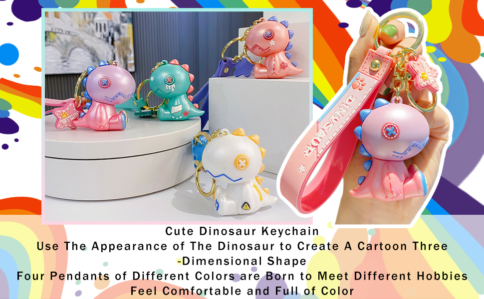 المادة - سلسلة المفاتيح اللطيفة على شكل ديناصور جرافيتي، الجزء المتدلي مصنوع من بولي كلوريد الفينيل عالي الجودة، وحلقة المفاتيح مصنوعة من معدن عالي الجودة، ومتين.