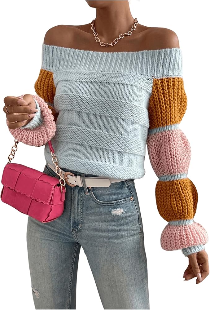 كنزة صوفية نسائية من GORGLITTER ذات كتل ملونة وأكمام طويلة بدون أكتاف