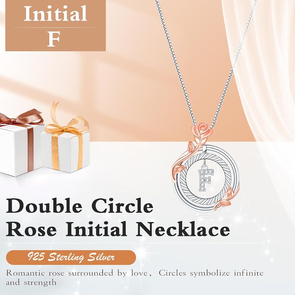 💖【تصميم مذهل بدائرة مزدوجة وقلادة وردية】يتميز بحلقتين متداخلتين ترمزان إلى قوة الرابطة الشخصية والاتصال بأحبائك. الوردة تنمو في دائرة، قلادات فضية للنساء عصرية وأنيقة وجميلة، تعبر عن الرومانسية والحب العميق، فضلاً عن الامتنان لها، كما ترمز إلى الصداقة والاهتمام. عندما ترتدي هذه القلادة الأولية ذات الدائرة المزدوجة سيكون لديها تذكير. من قوتك وهذا يجلب السعادة لها.