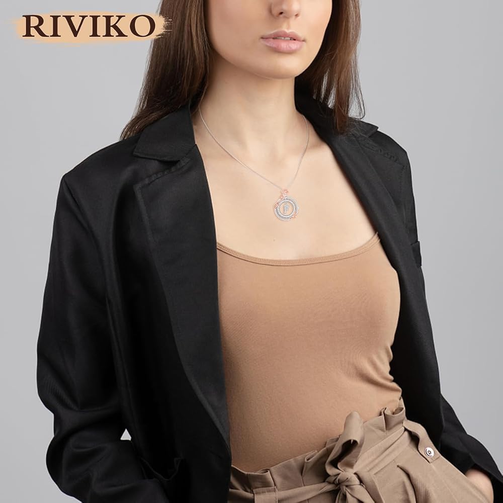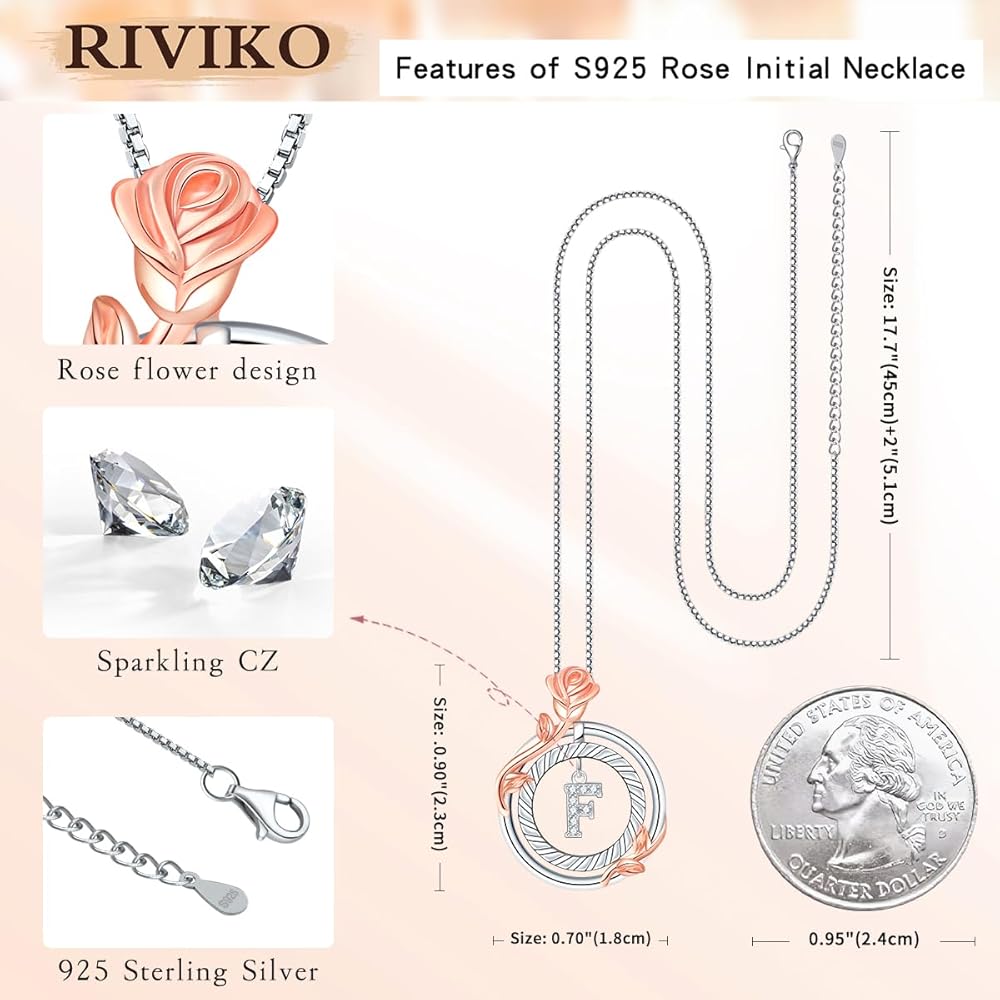 💖【مادة من الفضة الإسترلينية عيار 925】القلادة الأولية باللون الوردي والسلسلة والقلادة مصنوعة من الفضة الإسترلينية عيار 925 غير الضارة مع طلاء الروديوم على سطحها. المواد الآمنة لن تفقد بريقها الجميل، وهي متينة وصديقة للبشرة. في وسط القلادة الأولية مطعمة بالزركونيا المكعبة 5A. حجم القلادة: 0.7 بوصة ⅹ 0.9 بوصة | طول السلسلة: 17.7 بوصة +2 بوصة. تأتي القلادة النسائية مع صندوق هدايا باللون الأزرق الداكن من RIVIKO.