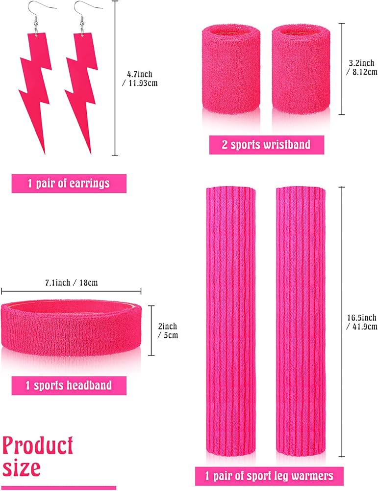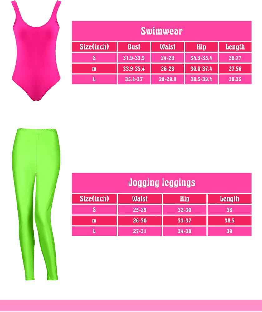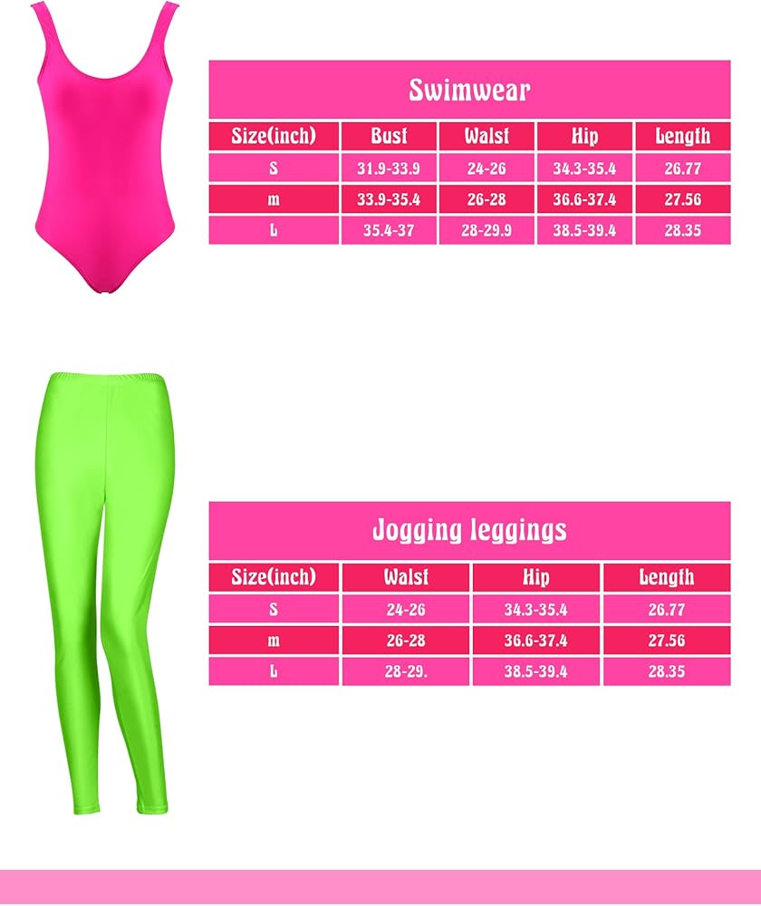 تشمل العبوة: سوف تحصل على قطعة واحدة من ملابس السباحة القديمة من الثمانينيات أو التسعينيات، وقطعة واحدة من بنطال الركض، وقطعة واحدة من عصابة الرأس، وزوج واحد من أساور المعصم، وزوج واحد من تدفئة الساق، وزوج واحد من الأقراط، والتي يمكنها إكمال طلباتك في الثمانينيات اكسسوارات زي