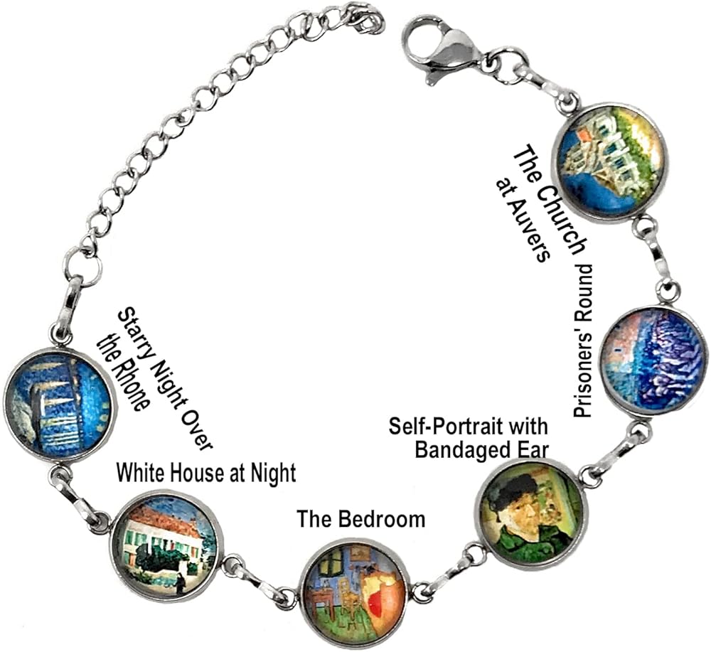 ** فن مجموعة فان جوغ ** على هذا السوار توجد لوحات مشهورة مرتبطة ببعضها: الكنيسة في أوفرز، جولة السجناء، البيت الأبيض في الليل، صورة ذاتية مع أذن ضمادة، غرفة النوم، ليلة مليئة بالنجوم فوق الرون. الصور تحت القباب الزجاجية بحجم نصف انش.