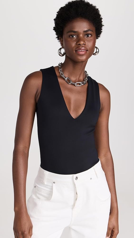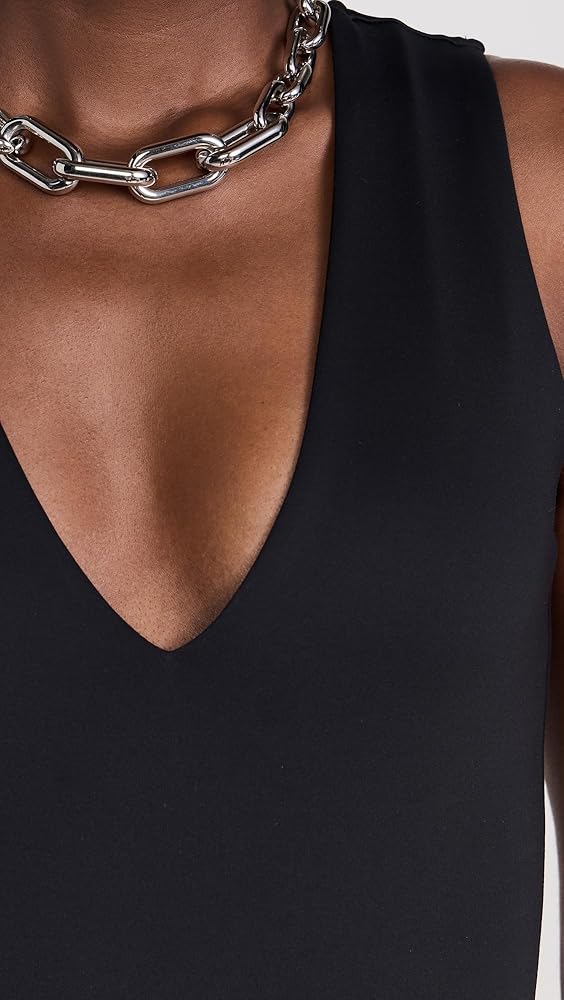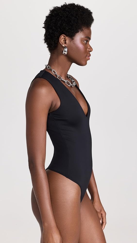 - خط عنق على شكل حرف V، لباس داخلي رفيع مع وصلة كبس