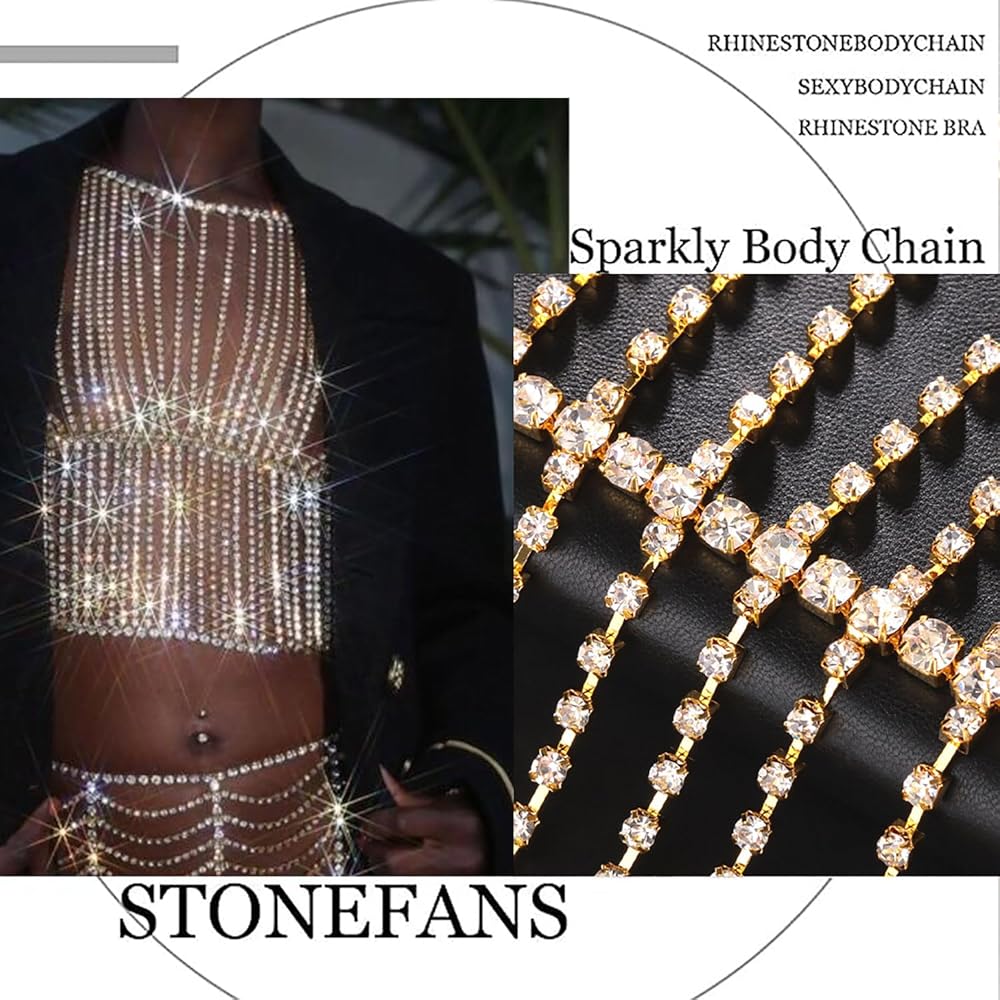 STONEFANS حجر الراين الجسم سلسلة أعلى الذهب للنساء مثير كريستال بيكيني البرازيلي سلاسل قلادة الهذيان حزب مجوهرات الجسم