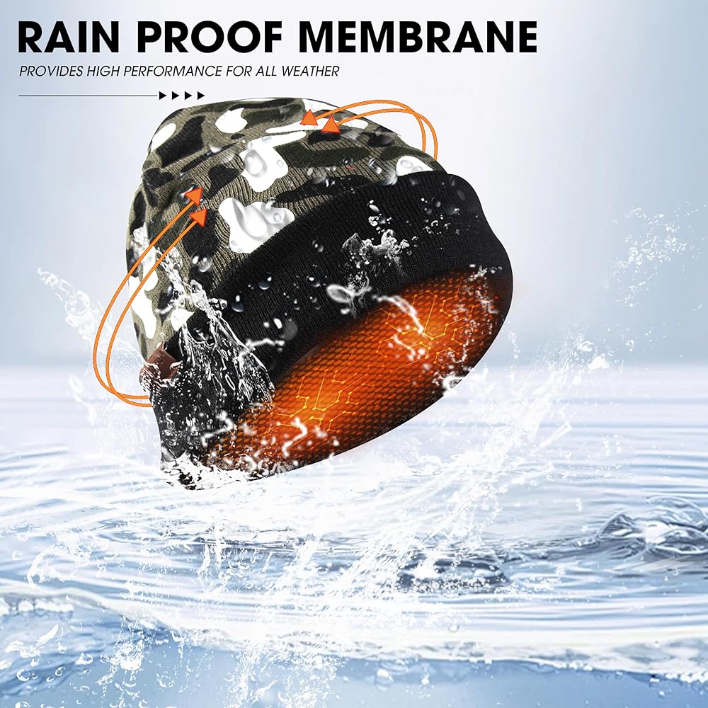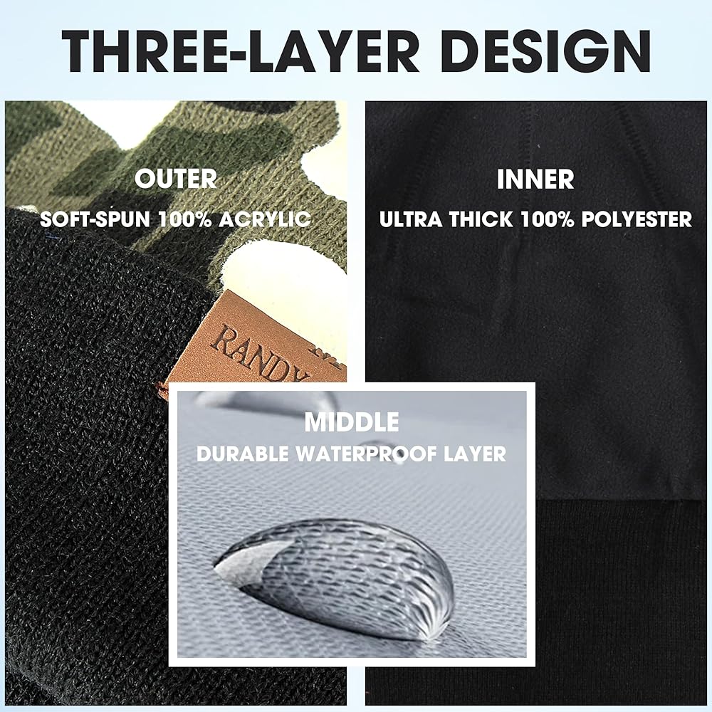 *هيكل من ثلاث طبقات* - تصميم قبعة صغيرة مقاومة للماء، والذي يحل بسهولة التناقض بين خاصية مقاومة الماء والتنفس، ويمنع جزيئات الماء الخارجية من الدخول إلى القبعة وفي الوقت نفسه التعرق بسرعة أثناء عملية الحركة. تتميز كل قبعة بجزء خارجي من نسيج الأكريليك من أجل المتانة، وجزء داخلي من الصوف مضاد للأشعة فوق البنفسجية ومضاد للكهرباء الساكنة من أجل النعومة والدفء والراحة، وغشاء مقاوم للماء عالي الأداء، والذي يتميز بأنه مقاوم للماء للغاية وجيد التهوية للحفاظ على رأسك منتعشًا.