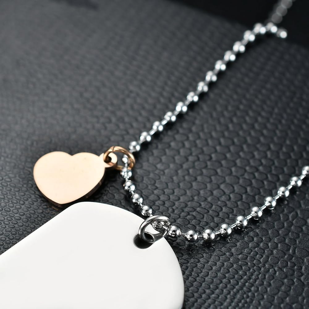 المقاس: مقاس البطاقة: 1.9 × 1.0 بوصة، طول السلسلة: 50 سم (لقد تلقينا تعليقات من مشتري المنتجات المشابهة، ونقول أن ربط سلسلة هذا المنتج وبطاقة الكلب سهل جدًا كسر. تستخدم منتجاتنا حلقة اتصال قوية جدًا، ولن تنكسر بسهولة لأننا أجرينا العديد من الاختبارات)