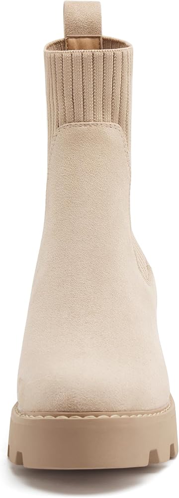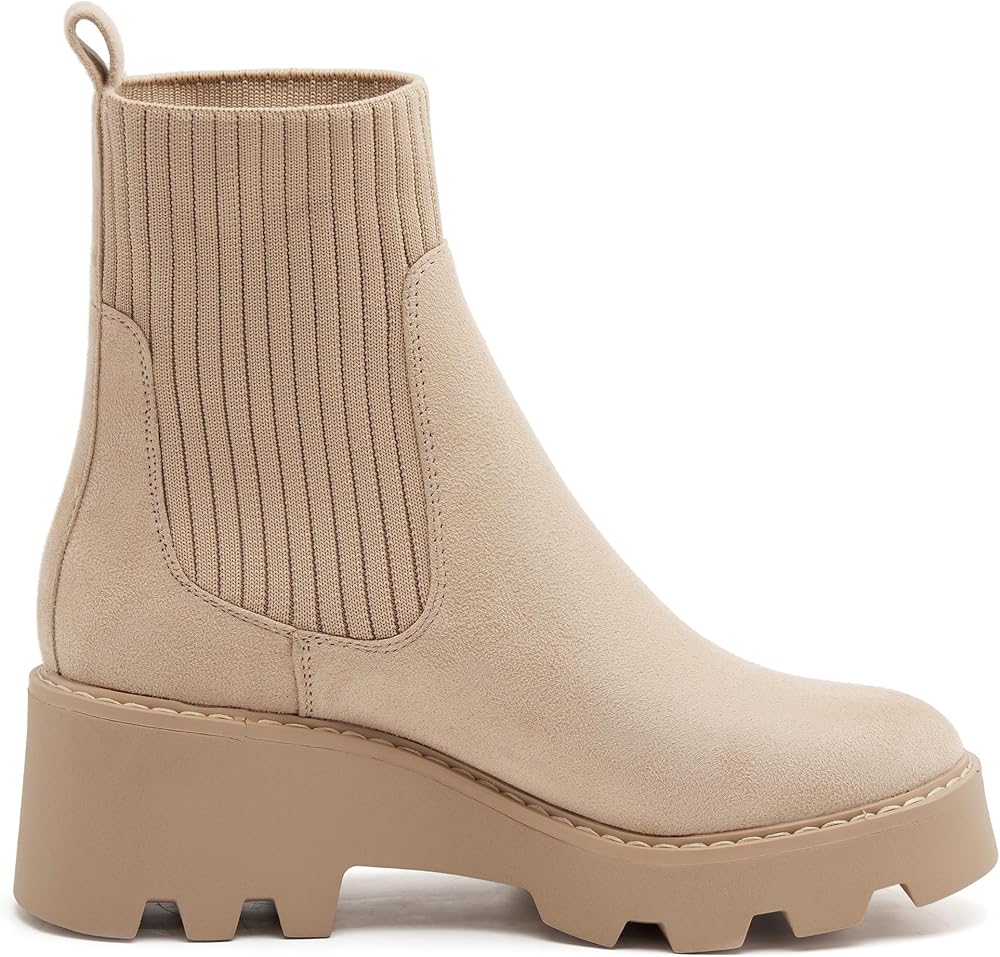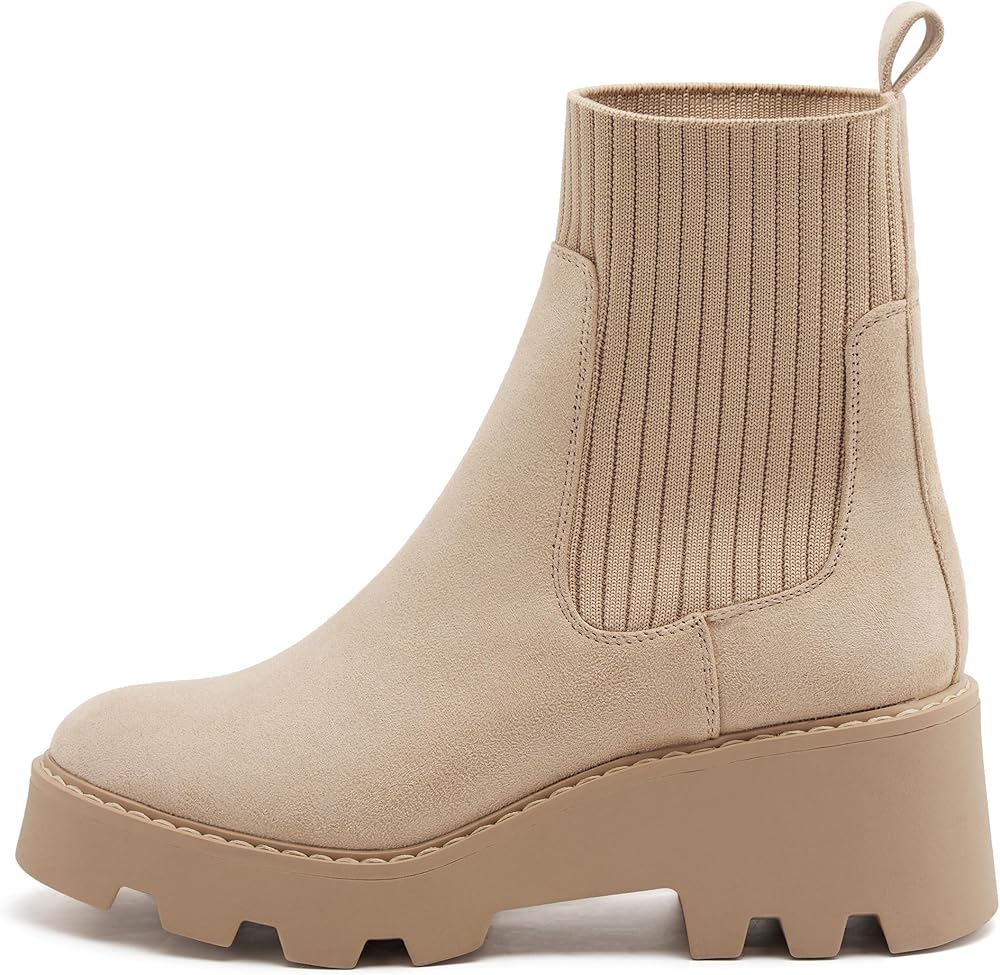 أحذية تشيلسي المرنة: أحذية الكاحل ذات الكعب العالي المكتنزة للنساء، أحذية تشيلسي المرنة الكاجوال يمكن ارتداؤها وخلعها بسهولة.
