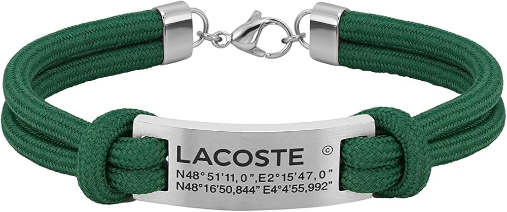 يتمتع سوار الهوية الخالد بدوران جديد بفضل Elios من Lacoste، والذي يتميز بسلك رياضي مصنوع من البلاستيك المعاد تدويره المرتبط بالمحيط، ويتم تثبيته بمشبك كلاسيكي على شكل جراد البحر. لوحة معدنية مصقولة، مفصلة بشعار لاكوست المملوء بالمينا وإحداثيات مستوحاة من البحر هي أبرز ما يميز التصميم المعاصر.