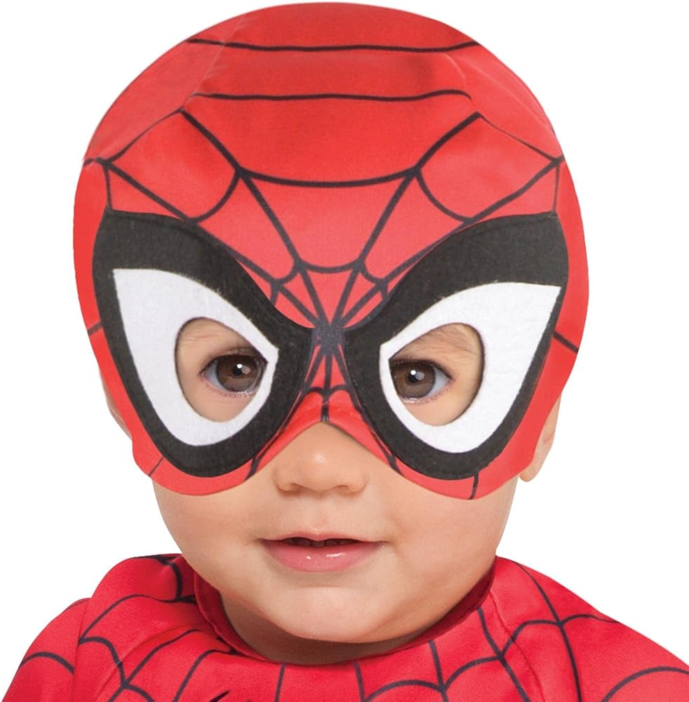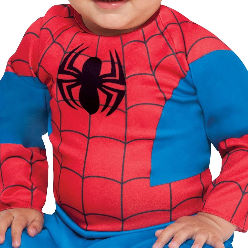 هذا الزي للأطفال الرضع بمقاس قياسي 12-24 شهرًا يعكس مظهر سبايدر مان الكلاسيكي باللون الأحمر والأزرق الملكي مع تصميم شبكي على القبعة والصدر