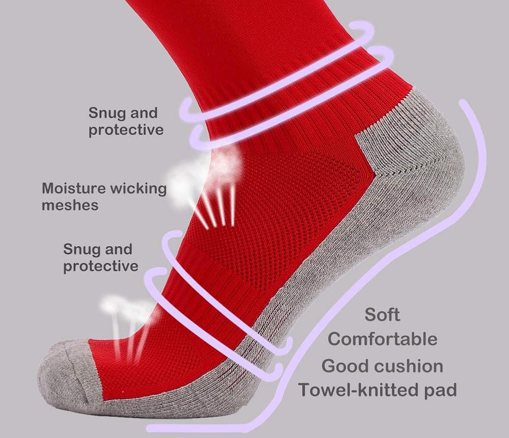 جوارب عالية حتى الركبة للرجال والنساء. مناسبة لألعاب الكرة مثل كرة القدم، والبيسبول، وكرة القدم، والهوكي الميداني، وما إلى ذلك. كما أنها مناسبة تمامًا لأحذية العمل/المحرك/الهواء.