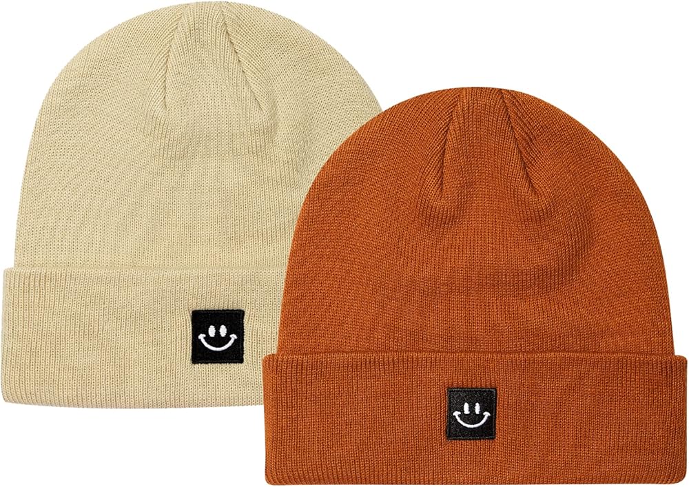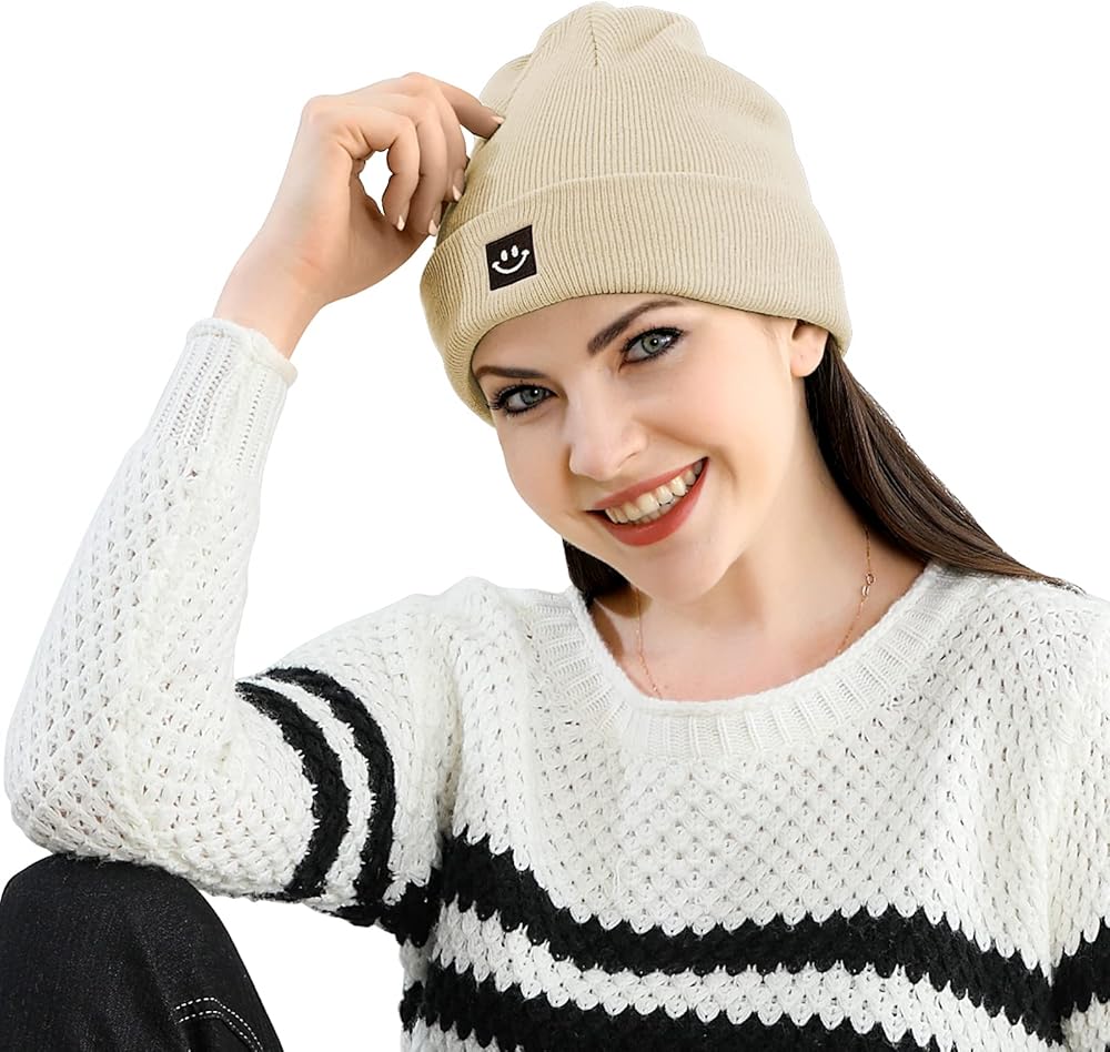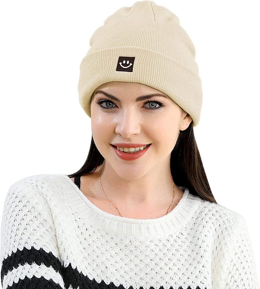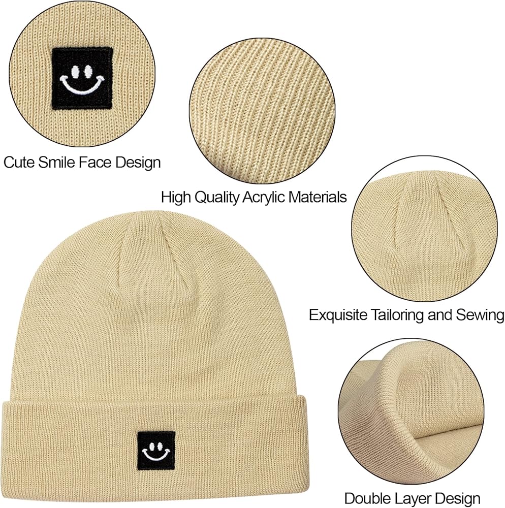 - قبعة صغيرة للسيدات بتصميم وجه مبتسم محبوك بسيط، مريحة في الارتداء.
