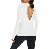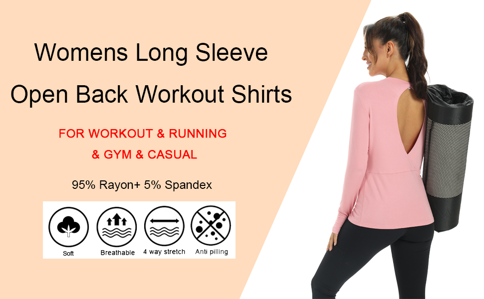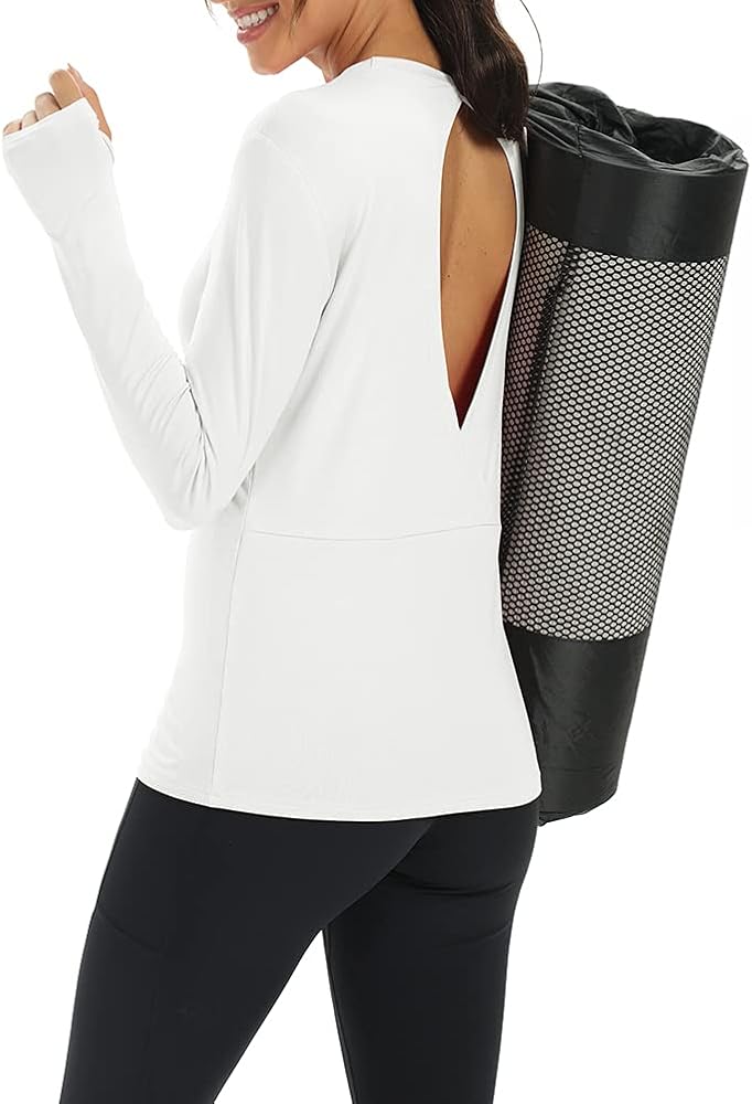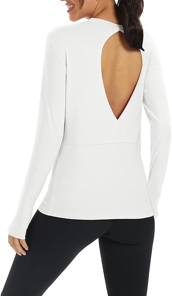 • تصميم قمصان التمرين بأكمام طويلة مع ظهر مفتوح ونمط فضفاض مما يجعله أكثر تدفقًا ويسمح بمزيد من تدفق الهواء، والظهر المفتوح يضيف القليل من المرح