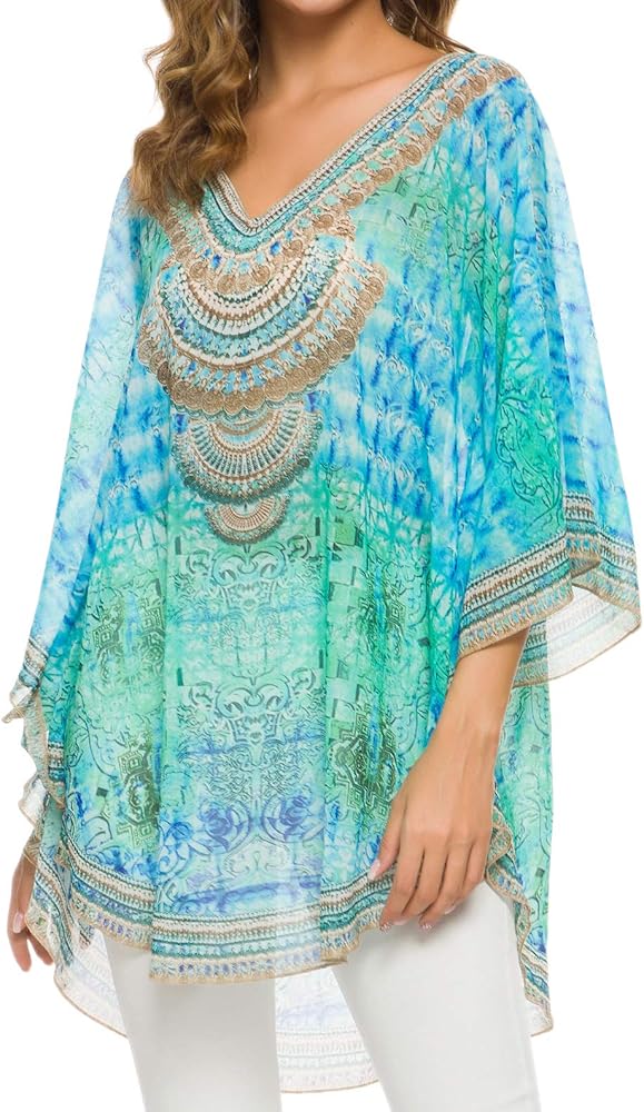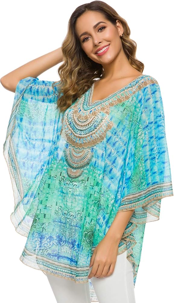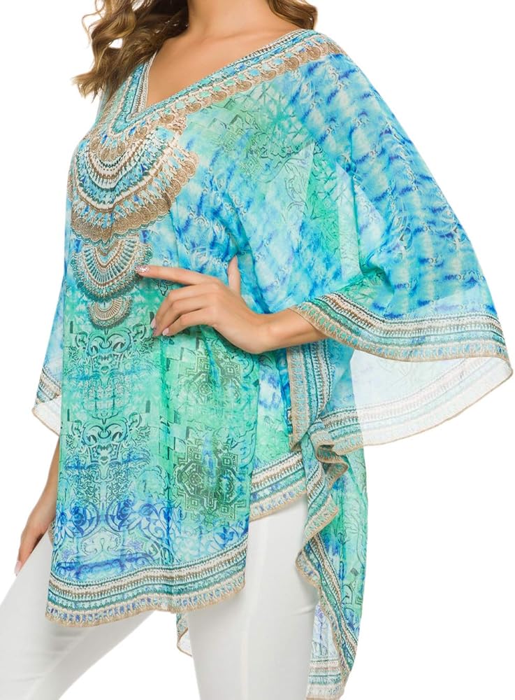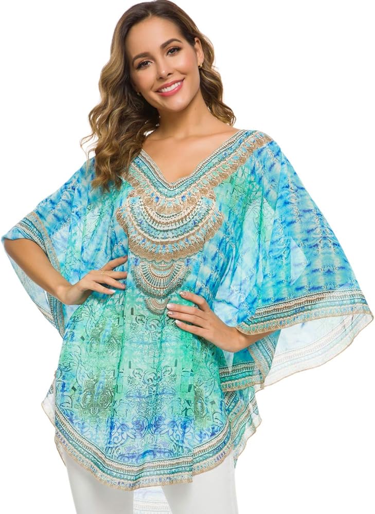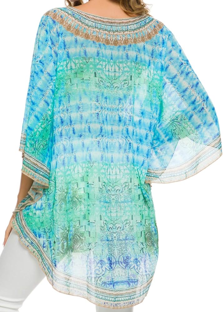 بلوزة ذات مظهر بوهيمي، إنها ساحرة ولافتة للنظر ولا تخرج عن الموضة أبدًا. كن مستعدًا للإطراء عندما ترتديها في عطلتك، أو الشاطئ، أو السباحة، أو حمام السباحة، أو للحفلات، أو ملابس غير رسمية. مع طباعة الأزهار، فهي ليس شفافًا للغاية مثل الأغطية، يمكنك ارتداؤه مباشرة كالمعتاد كفستان أو بلوزة أو قميص بدون أكمام.