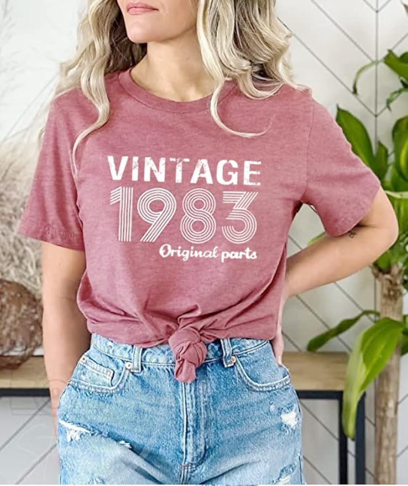 Vintage1983 قمصان للنساء هدايا عيد الميلاد 40th تي شيرت 1983 هدايا عيد ميلاد فكرة قمصان ريترو حفلة عيد ميلاد فكرة القمم