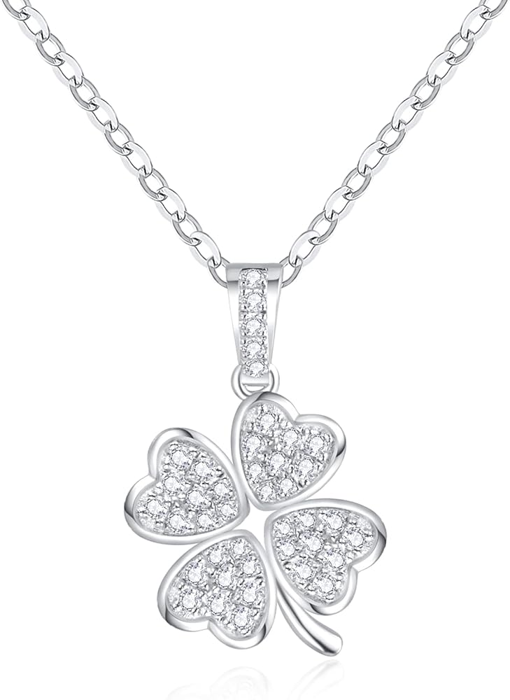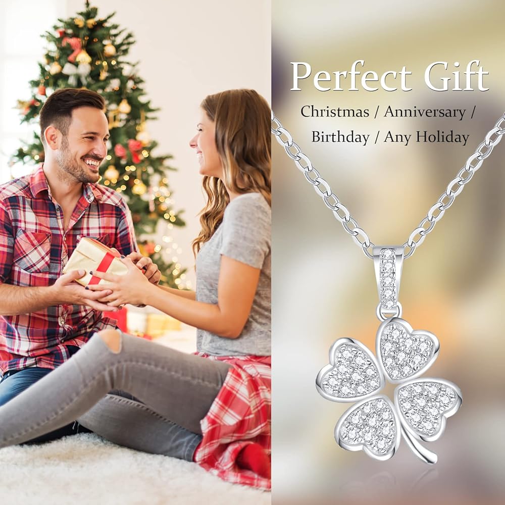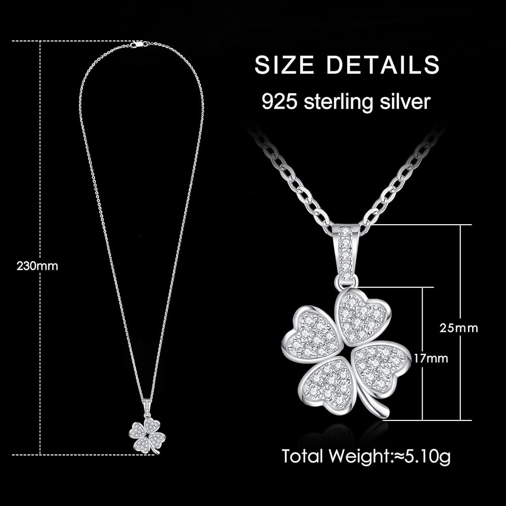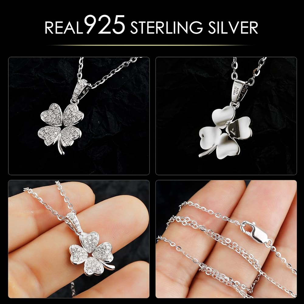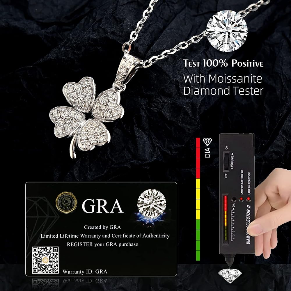 【S925 Sterling Silver & Design】-The pendant necklace is designed with a classic round cut,crafted with precious S925 sterling silver with 18K Gold Plated, will not easily change color and maintain lasting brilliance,lead and nickel free, hypoallergenic, will not make your skin green.Four hearts are formed by many round cut small moissanite in a lucky four-leaf clover design.The pendant ncklace's unique design style has attracted many people who pursue unique fashion.