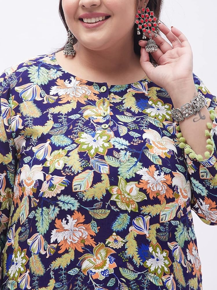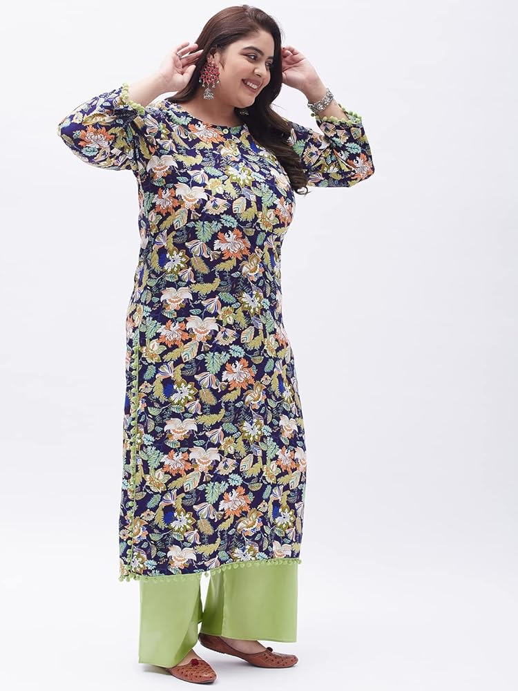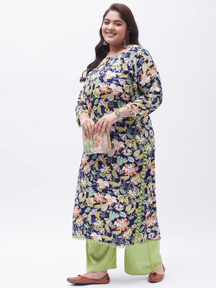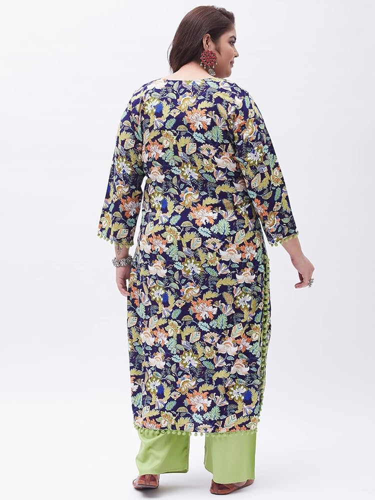 كورتا نسائية مطبوعة بمقاس كبير باللونين الأزرق والأخضر مع بالازو من Tissu