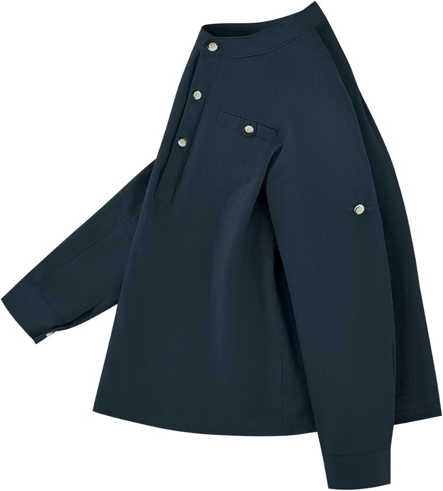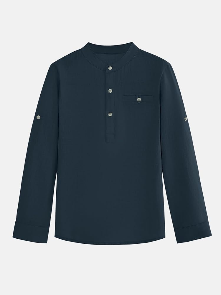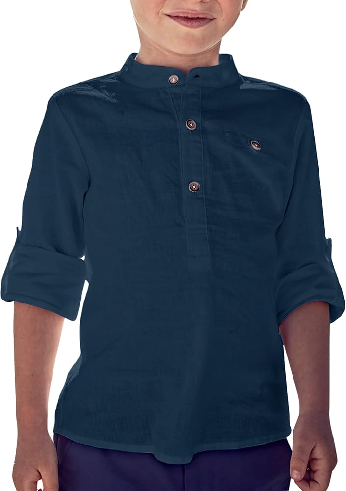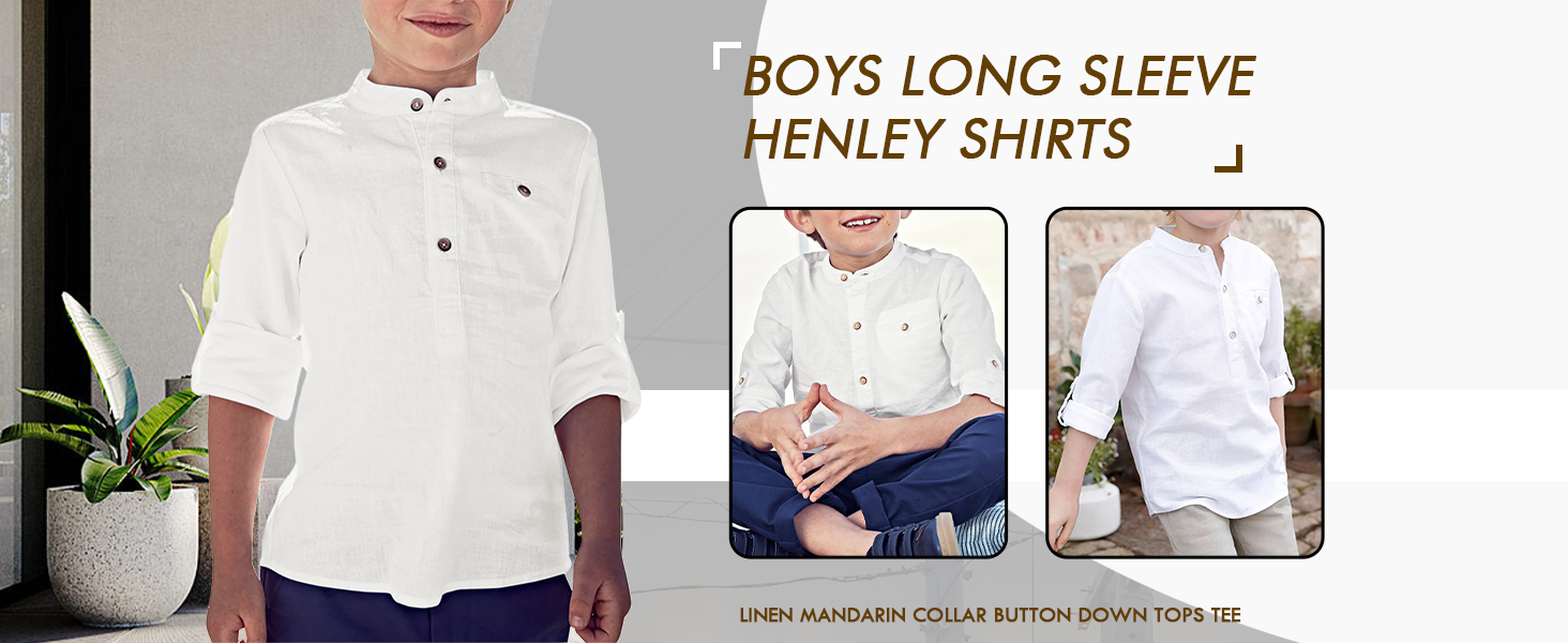 • السمات: تي شيرت كتان أنيق للأولاد، أقمشة ناعمة للراحة، قمصان بأزرار سفلية، تي شيرت هينلي بأكمام طويلة وأزرار لأعلى، جيب واحد أنيق على الصدر.